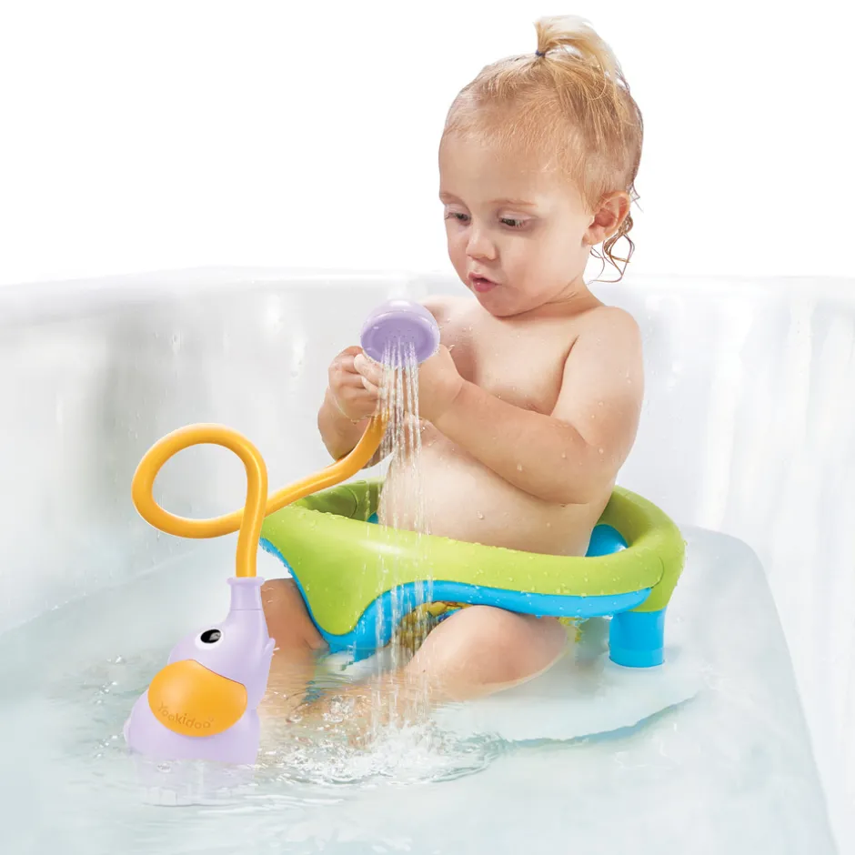 Bruseren trækker vand fra badekarret og skaber en endeløs strøm af vand. Bruseren er formet som en charmerende elefant med en lang snabel. Tryk på den lille knap og elefanten begynder at trække vand fra badekarret. Sjovt og lærerigt legetøj for barnet og en effektiv lille bruser som forældrene kan bruge til at vaske barnet med.