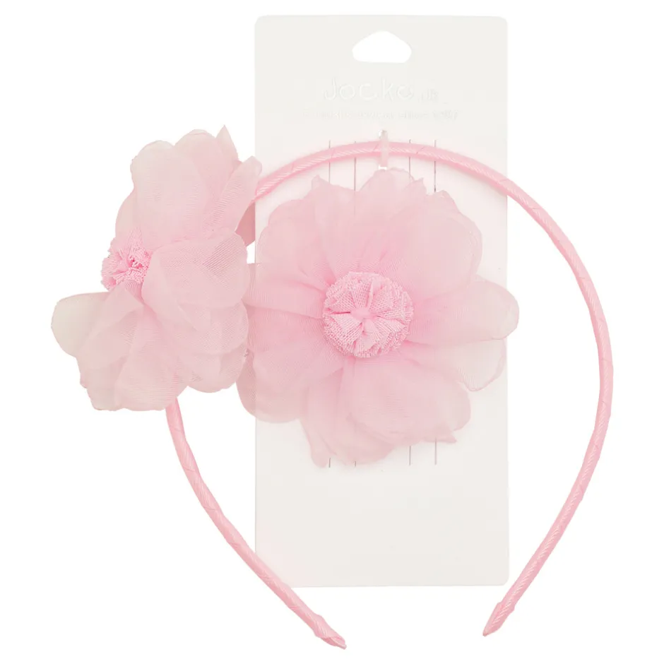 Sæt bestående af 2-farvet rosa diadem med stor matchende blomst på spænde