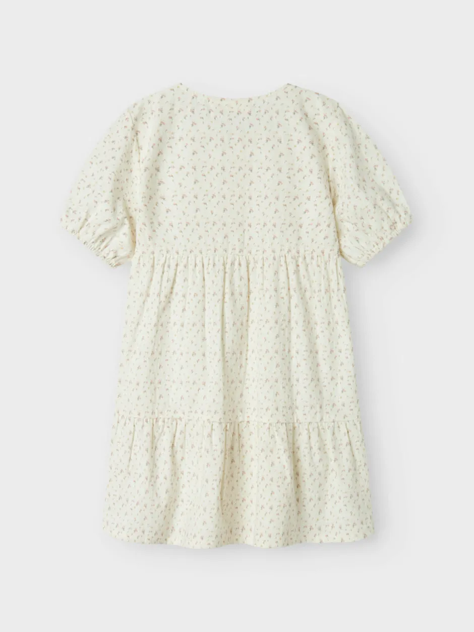 Forkæl din pige med et sødt og behageligt look med denne kjole, der har et charmerende print og korte ærmer. Ideel til både daglig brug og festlige lejligheder, og fremstillet af blødt, komfortabelt materiale, der sikrer optimal komfort hele dagen.