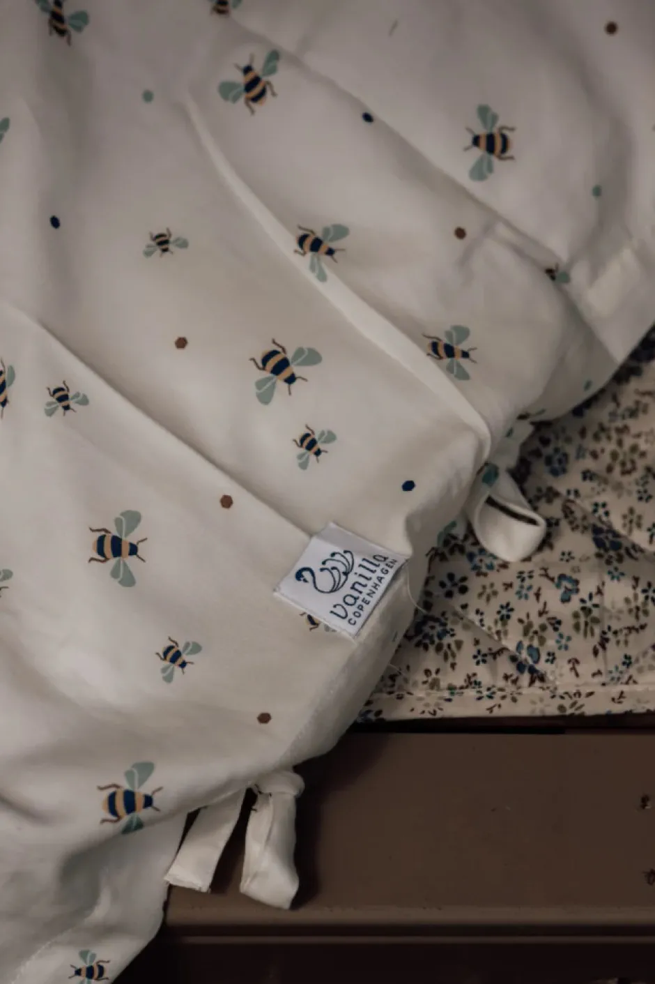 Junior: 100×140 cm | 40×45 cm.100% økologisk bomuld.Betræk dyne: Snorebinding / Betræk pude: Kuvertlukning.Maskinvaskes på 60° CSengesættet fra Vanilla Copenhagen er vævet i det fineste økologiske bomuld. Miljøvenlig og helt fri for allergener og skadelige stoffer.
