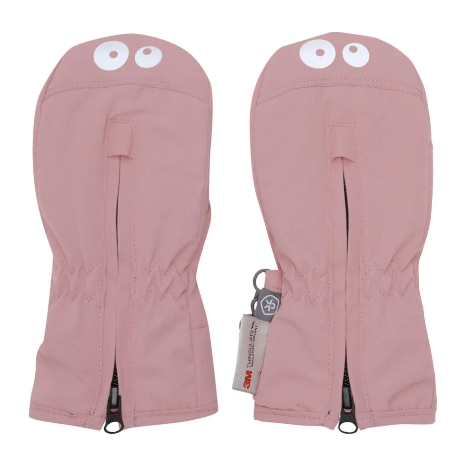 Lufferne åbnes nemt med en lynlås foran, hvilket gør dem lette at tage af og på. Smarte refleksdetaljer ved fingerspidserne – formet som små øjne – øger synligheden og tilføjer et legende udtryk. En praktisk plastikklips gør det muligt at holde lufferne samlet, når de ikke er i brug.