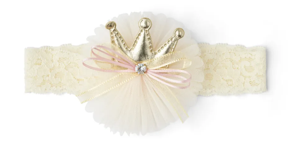 Naturfarvet blonde elastikbånd pyntet med krone og rosa sløjfe