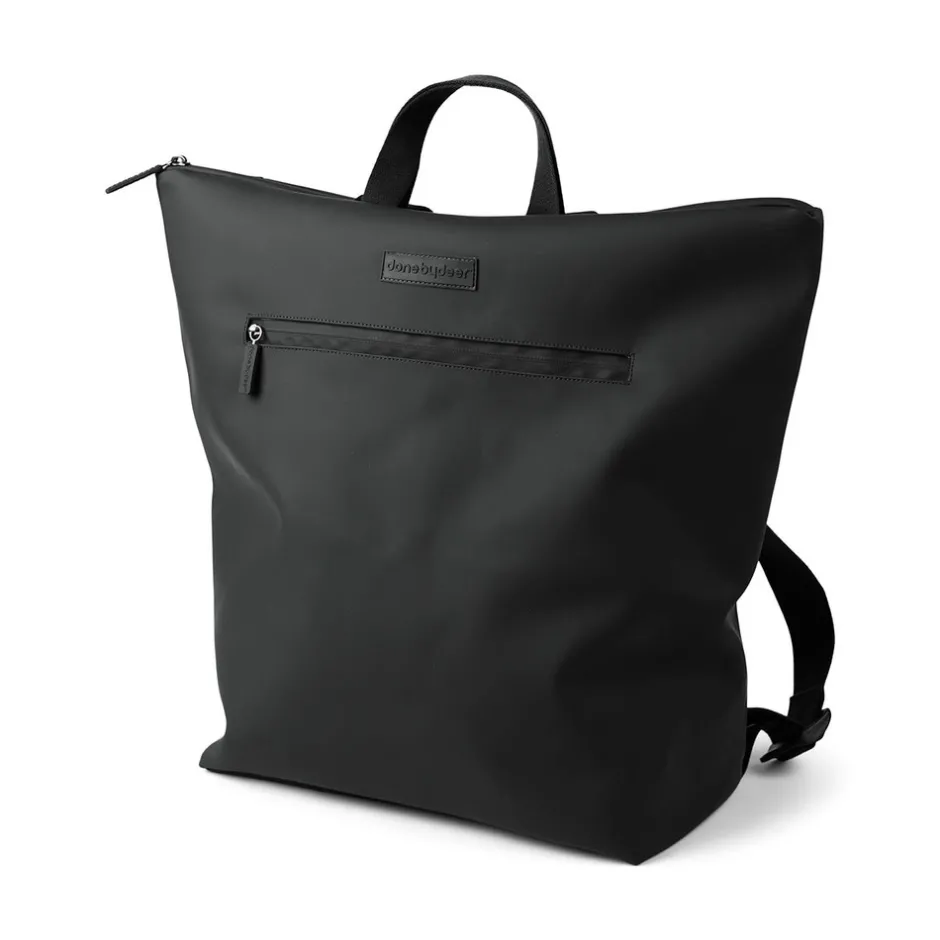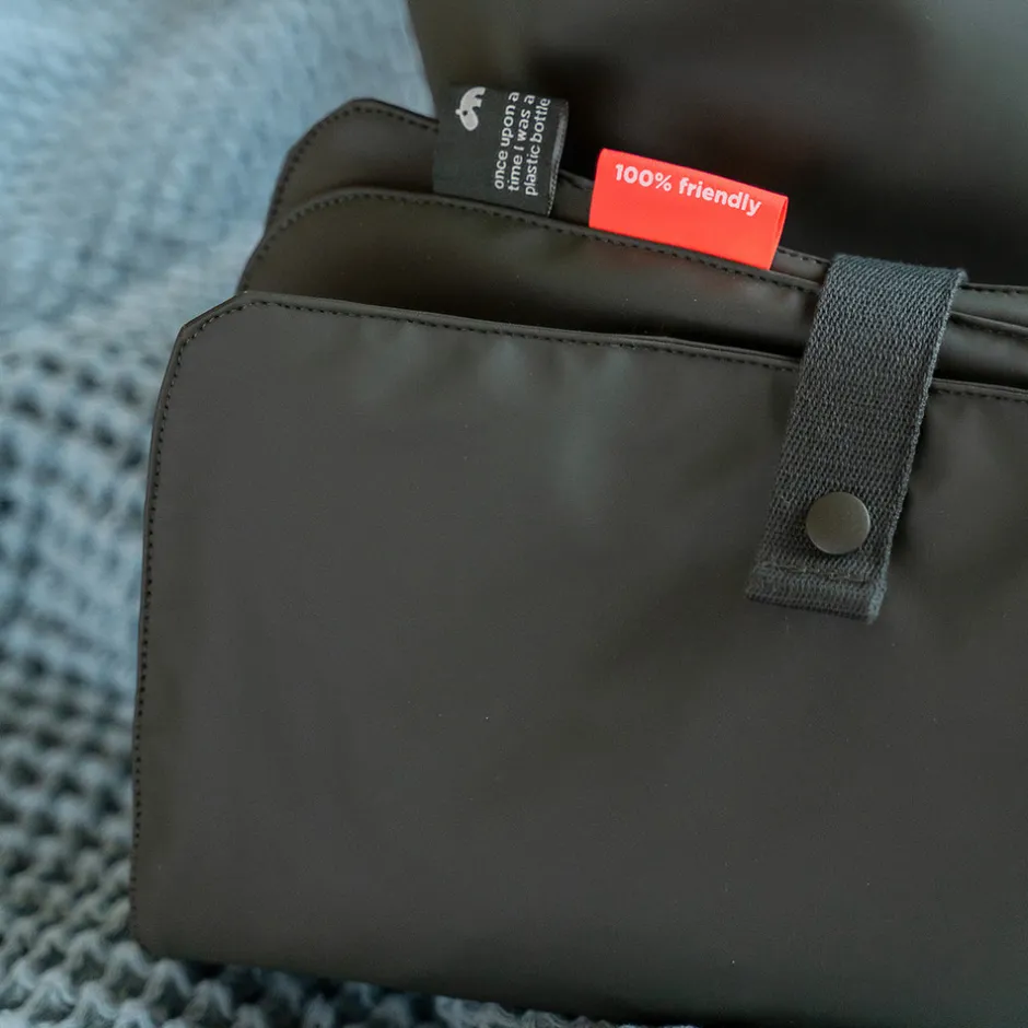 Den praktiske puslerygsæk kombinerer funktionalitet og holdbart design. 38 PET flasker genanvendes ved fremstillingen af både det ydre stof og foret på denne rummelige og praktiske puslerygsæk til alle babys nødvendigheder på farten. Den brede åbning giver let adgang til indholdet. 7 praktiske indvendige lommer og en udvendig lomme med lynlås gør organisering til en leg. To justerbare stropper giver dig mulighed for at justere pasformen og gøre rygsækken behagelig at have på. Der medfølger et foldbart og vandtæt pusleunderlag, samt to barnevogns- eller klapvognsstropper. Den vandtætte overflade og lynlåse gør at rygsækken er vejr sikker.