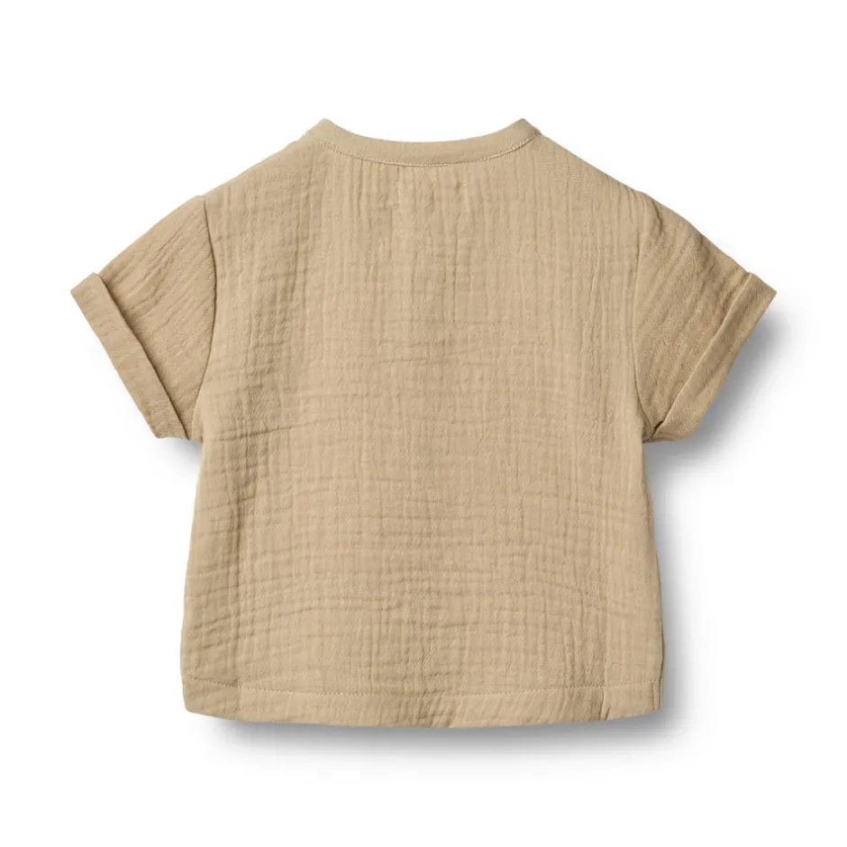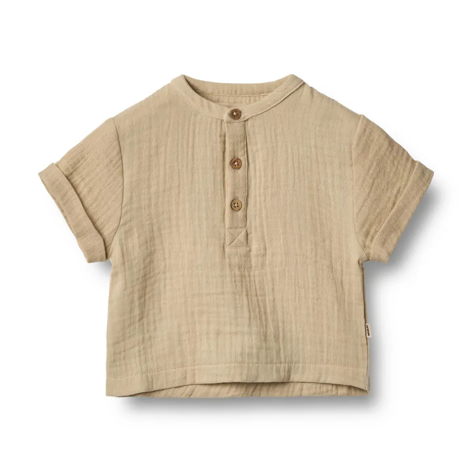 Blød kortærmet skjorte i økologisk bomuldsgaze til babyer.