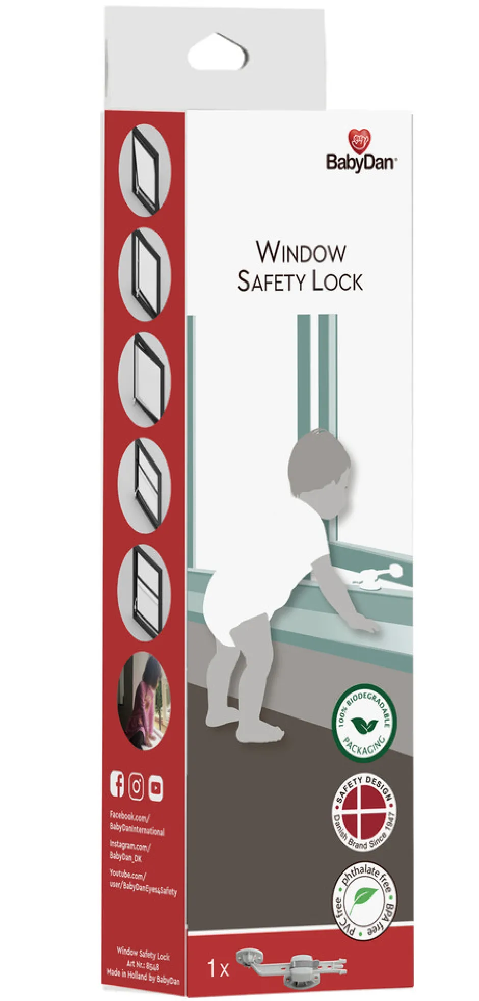 Vindueslås. Forhindrer faldulykker, mens den tillader ventilation. Passer til indvendigt/udvendigt hængslede trævinduer og vertikale skydevinduer. Dette produkt er børnesikret og overholder EN16281. Nogle børn vil være i stand til at åbne børnesikringsmekanismen, specielt børn omkring 4 år og over. Testet fri for giftige stoffer som ftalater, BPA og PVC. Emballagen er 100% biologisk nedbrydelig, Cradle to Cradle cerfificeret