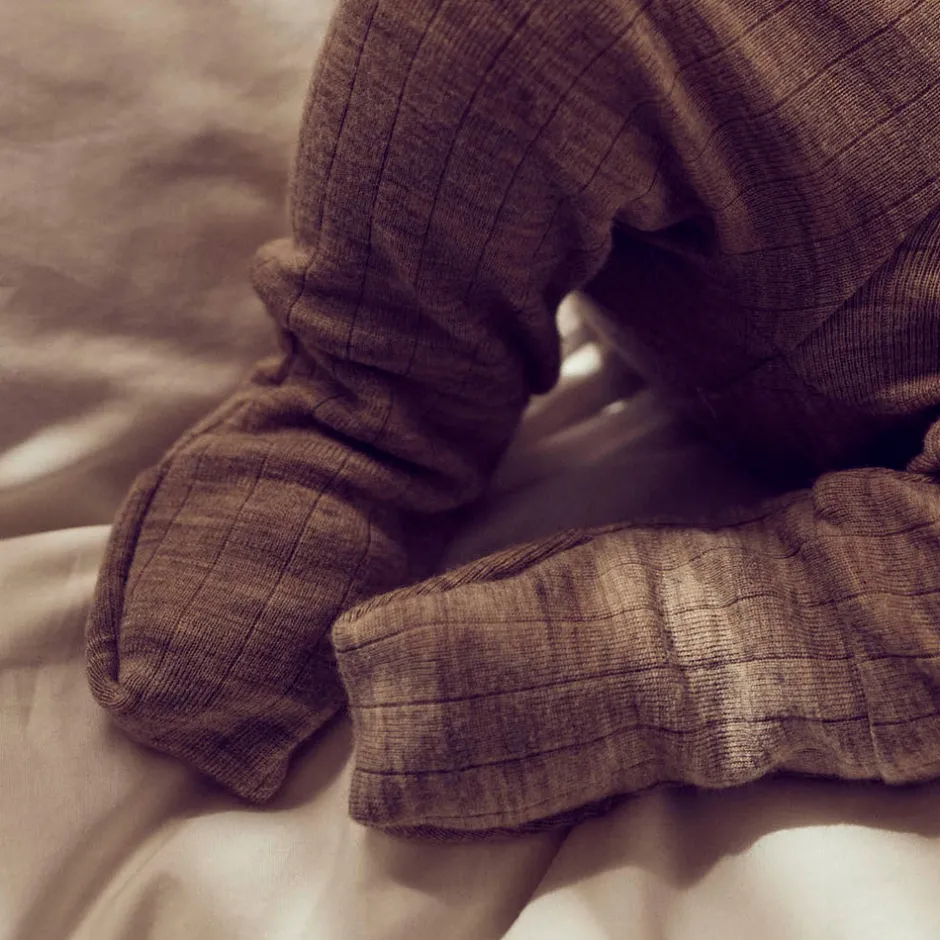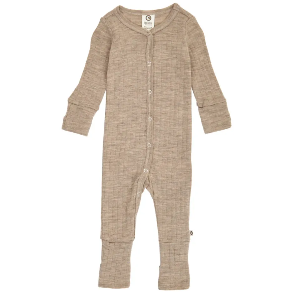 Skøn heldragt i blød merinould rib kvalitet. Heldragten lukkes fortil med tryklåse og har vendbare fødder og hænder. Dragten er perfekt til de små for at sikre at de ligger lunt og trygt. De vendbare fødder og hænder kan foldes efter behov. Denne heldragt er fremstillet fra str. 44-74 og passer derfor til meget små babyer. Fremstillet i blød 100 % merinould-rib (GOTS Organic Certified by Ecocert Greenlife Lic. No. 152033). Produktet er GOTS organic- certificeret, hvilket betyder at bomulden er certificeret økologisk, og at der i alle andre processer som farvning, strikning og syning er taget de strengeste hensyn til miljøet. GOTS er internationalt anerkendt som den førende standard for forarbejdning af tekstiler af økologisk bomuld. Derudover tages der også hensyn til arbejdsforholdene, hos dem der producerer tøjet. Økologisk uld 100%