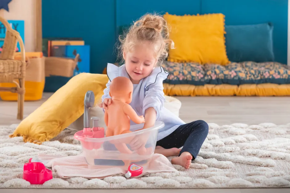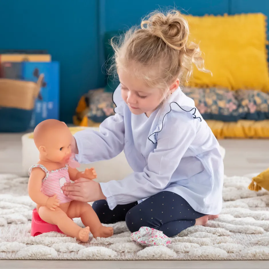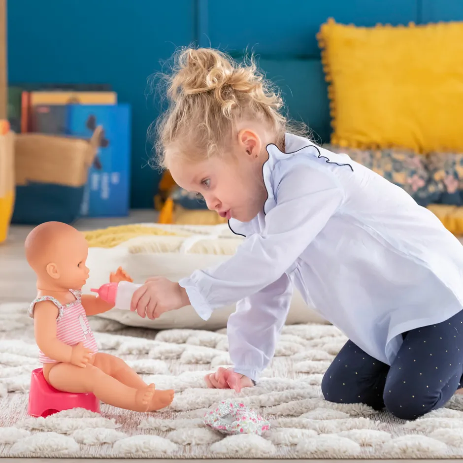 Denne søde babydukke er perfekt til små børn fra 2 år og opefter. Dukken kan drikke af sin flaske og tisse i potten, hvilket gør legen endnu mere realistisk og sjov. Den kan også bades, så dit barn kan tage den med i badekarret for endnu mere leg og hygge.