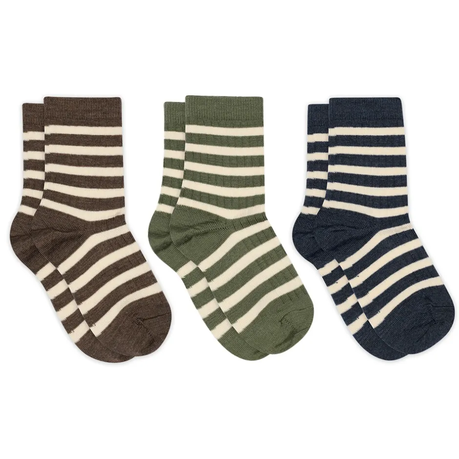 Klassisk strømpe med striber og rib-struktur fra mpKids. Strømperne er strikket i uld og har forstærket hæl og tå.