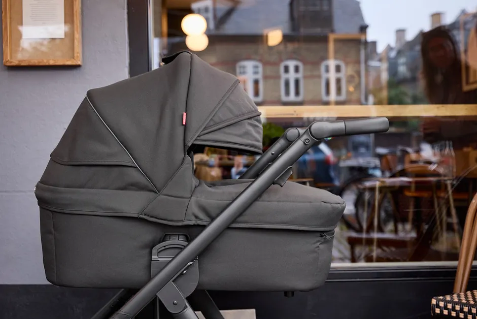 Odder Evoe liggedelen er en miniudgave af de store Odder barnevogne, og rummer alle de velkendte detaljer – fra integreret lygte og smarte udluftningsmuligheder i kalechen, til praktiske lommer både i kalechen og foran på liggedelen.