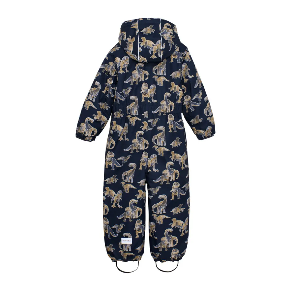 Varm snedragt fra Minymo. Dragten er lavet af 100% polyester med fleecefor på indersiden. Dragten har mange funktioner såsom aftagelig hætte og aftagelige gummistropper ved fødderne. Blød elastik ved både håndled og ankler for at sikre en god pasform. Dragten har refleksdetaljer for at sikre, at barnet altid kan ses, når det leger udenfor. Dragten er åndbar og vandtæt med et vandsøjletryk på 10.000 mm samt slidstyrke på 60.000. Imprægneret med BIONIC FINISH® ECO. Certificeret i hht. GRS