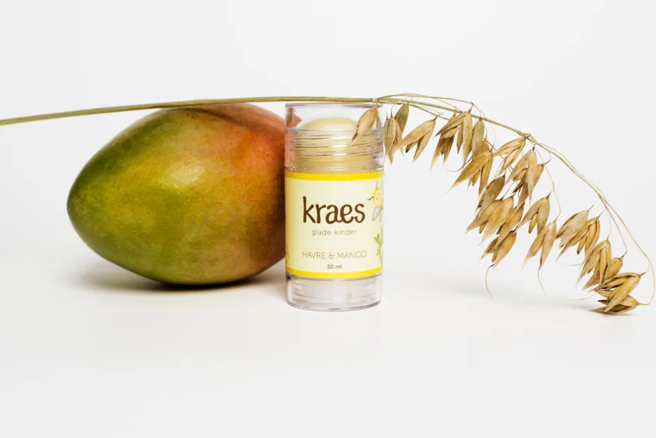 KRAES glade kinder er en naturlig plejestick til daglig forebyggelse af hudirritation, forårsaget af vintervejr/frost, savl og sol. Den lindrer tørhed i ansigtet, sprukne læber, hudafskrabninger, solskoldning og insektbid. Den er rig på vitaminer, naturlige antioxidanter og essentielle fedtsyrer, der beskytter, fugter og lindrer den sensitive hud. KRAES glade kinder indeholder udelukkende naturlige ingredienser, hvorfor du også kan bruge plejesticken til at lindre sarte brystvorter uden at bekymre dig om, hvorvidt dit barn bliver udsat for unødvendig, syntetisk kemi. Den indeholder havreolie, kokosolie, sheasmør, mangosmør, castorolie, abrikoskerneolie, bivoks og intet andet. Plejesticken er praktisk at have med i tasken til nem og hurtig beskyttelse i vuggestuen/børnehaven og på ferien.