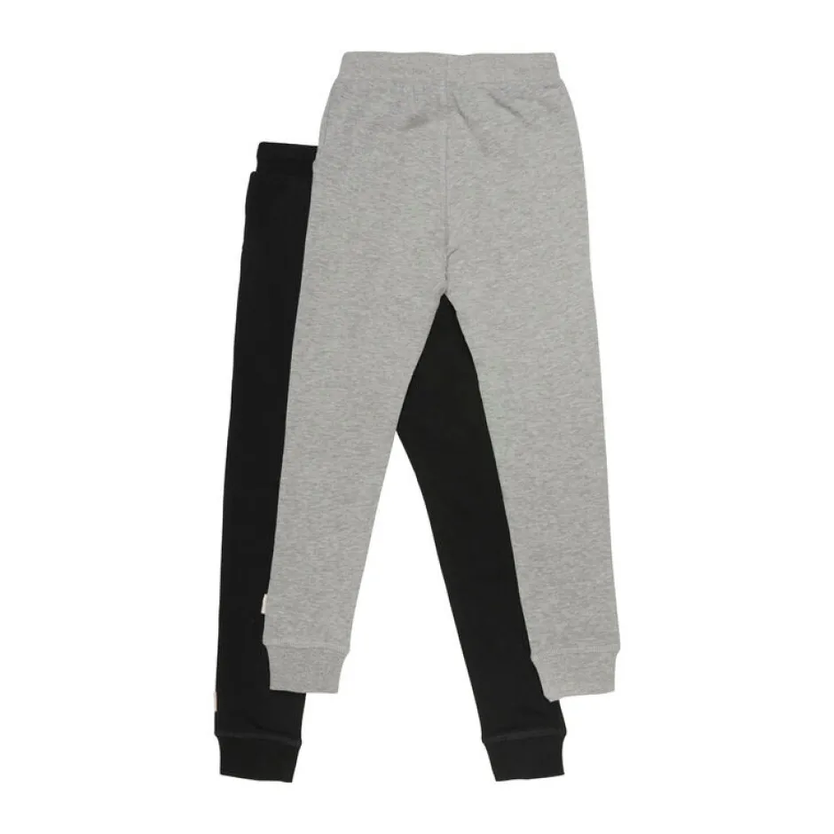 Lækre 2-pak sweatpants i forskellige drengede farvekombinationer. Disse bukser er med ribkant i talje og ved ankler. Frontlommer og hvid snøre i livet. God pasform. Super blødt materiale i 100 % bomuld.