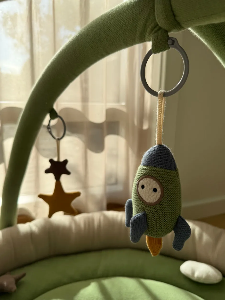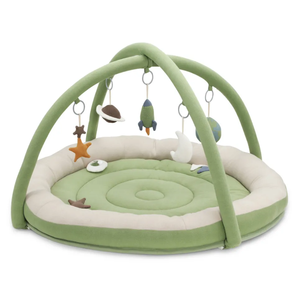 Aktivitetstæppe fra Vanilla Copenhagen der stimulerer dit barns sanser, kreativitet og udvikling på alle niveauer. Aktivitetstæppet er udstyret med blødt legetøj i forskellige højder, der opfordrer dit barn til at udforske og gribe fat i legetøjet. Dette hjælper med at udvikle deres motoriske færdigheder og hånd-øje-koordination på en sjov og interaktiv måde.