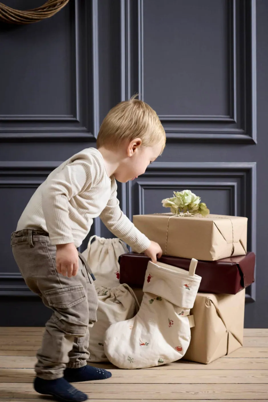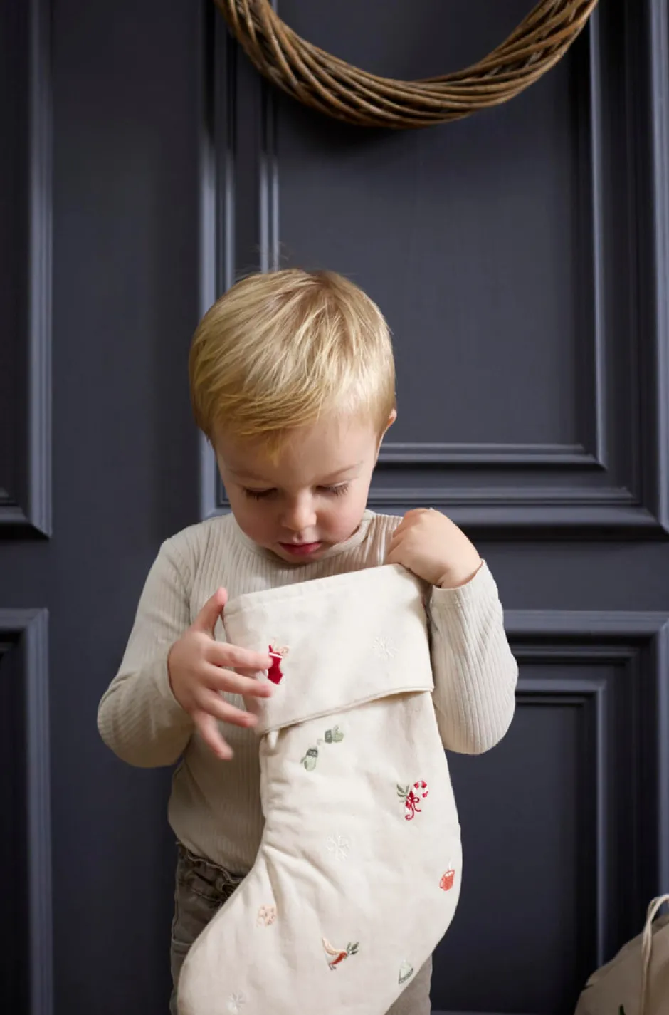 Den fine sok er lavet af ufarvet økologisk bomuld og let vatteret, så den beholder sin form.