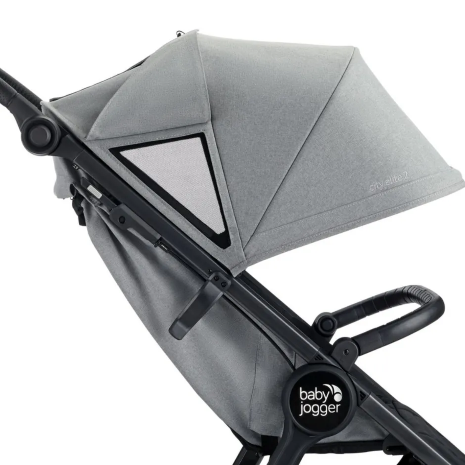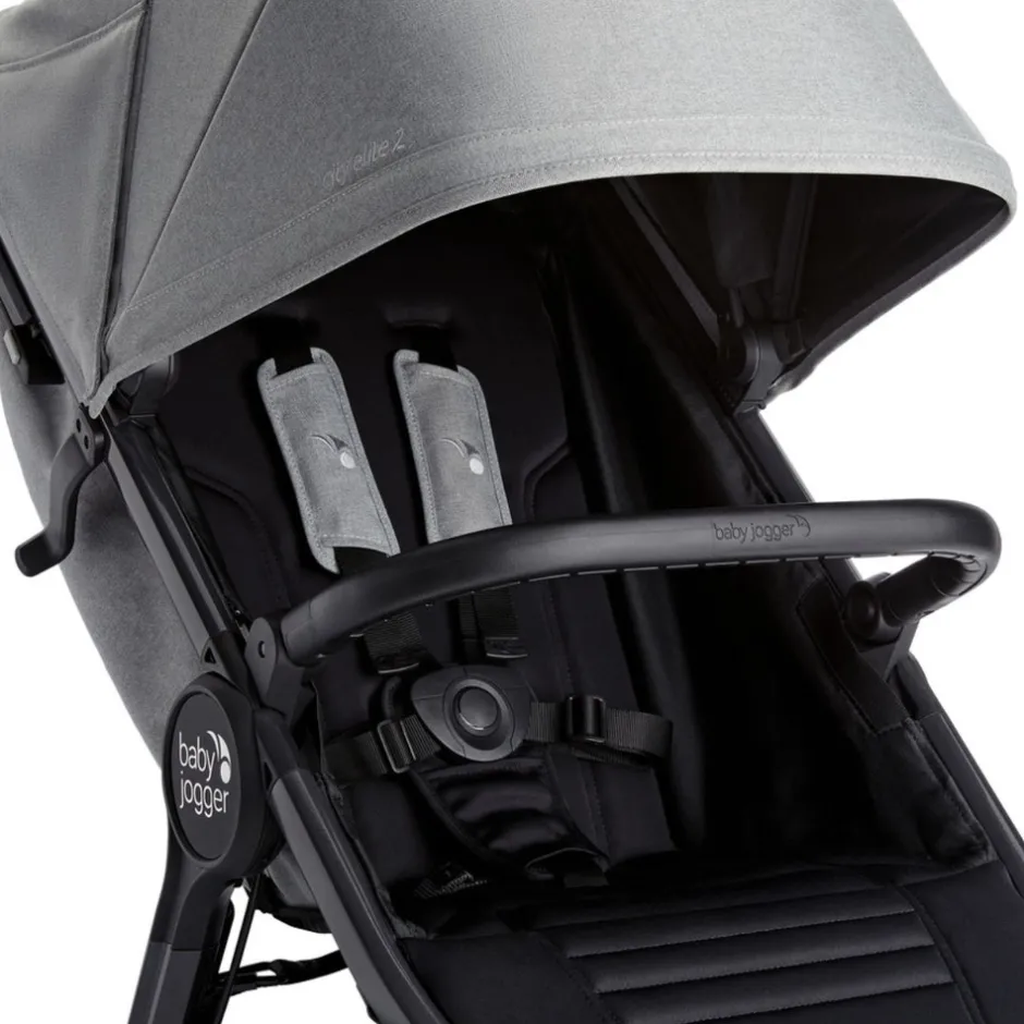 Baby Jogger City Elite 2 er den populære klapvogn som opfylder alle dine behov. Med et liggemål på 98 cm. og et rummelig sæde er dette en klapvogn der kan bruges længe. Der er mange tilbehørs muligheder og features i City Elite 2. Med Baby Jogger City Elite 2 får man en klapvogn der er designet til alt slags brug, om det er en tur i shoppecenteret eller en dejlig tur ud i naturen. Med det justerbare styr er det nemt at finde den rette indstilling, og det drejbare forhjul gør det nemt at skubbe klapvognen. Forhjulet kan låses, så derfor er en tur i naturen og til mere ujævn terræn ikke i vejen. Ryglænet har trinløst indstilling ved brug af snoretræk bagpå, integreret 5-punktsele, og med justerbar fodstøtte er den rette side eller ligge position let at finde, og en lur kan sagtens tages i klapvognen. Med den store kaleche i UV50+ er barnet godt beskyttet mod sol, vind og vejr, og med ventilation kan der komme lidt luft til de varme dage. Klapvognen klappes let sammen med én hånd, og trods rummelighed og robusthed bliver den kompakt og vejer ikke mere end 11,5 kg. og er derfor en let klapvogn. Når klapvognen er klappet sammen er der en sikkerhedslås som sikre at den forbliver lukket. Varekurven er let tilgængelig, selvom ryggen er nede, og er godkendt til 5 kg. så god plads til oppakning. De robuste gummihjul og affjedring, giver klapvognen en fantastisk kørefølelse om det drejbare forhjul er låst eller ej. Klapvognen er godkendt til 22 kg. men testet af Baby Jogger til at kunne klare en samlet vægt på 39,5 kg.