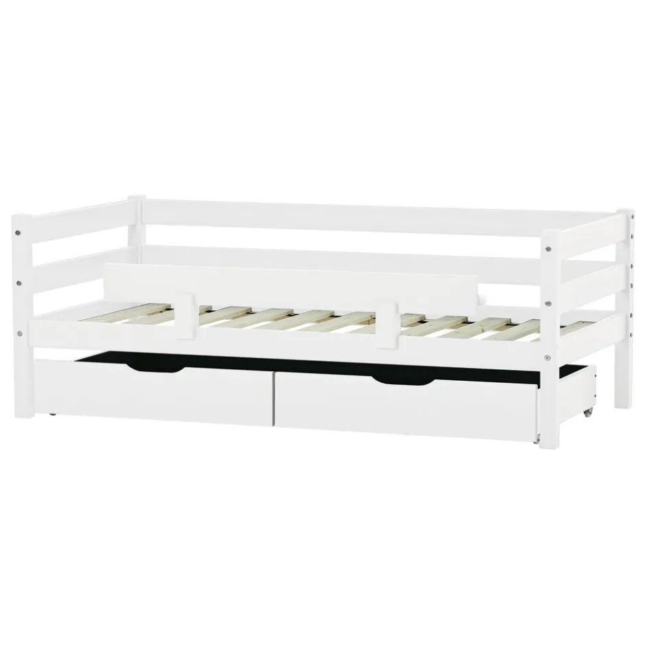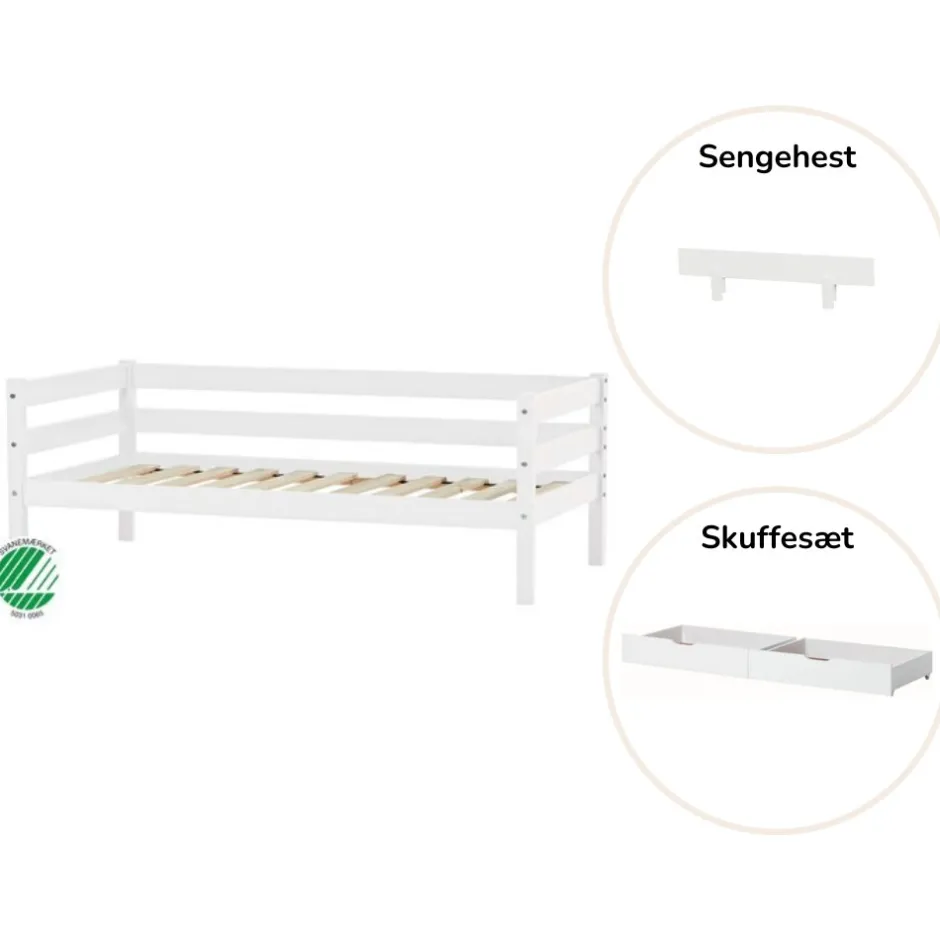 ECO Comfort juniorsengen fra Hoppekids er en sød og praktisk seng i størrelsen 70×160 cm. Den egner sig perfekt som en mellemstation mellem babysengen og voksensengen. Hoppekids laver mange senge og muligheder heriblandt denne enkle og flotte ECO Comfort juniorsengen. Med en madras størrelse på 70×160 cm. er denne juniorseng et godt valg når barnet skal ud af tremmesengen og videre til en større, men ikke er helt klar til en voksen størrelse seng. Sengen er en lille fin og hyggelig seng, som danner en tryg base for barnet gennem mange år, og sikre en dejlig natte søvn.