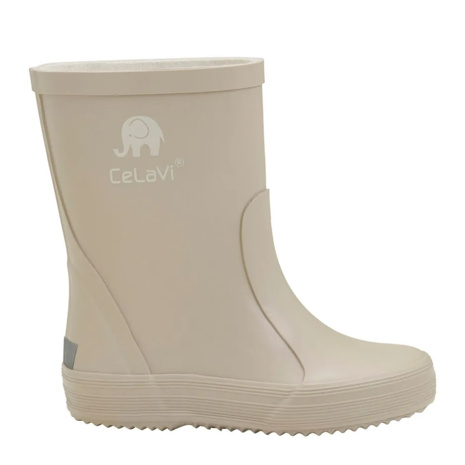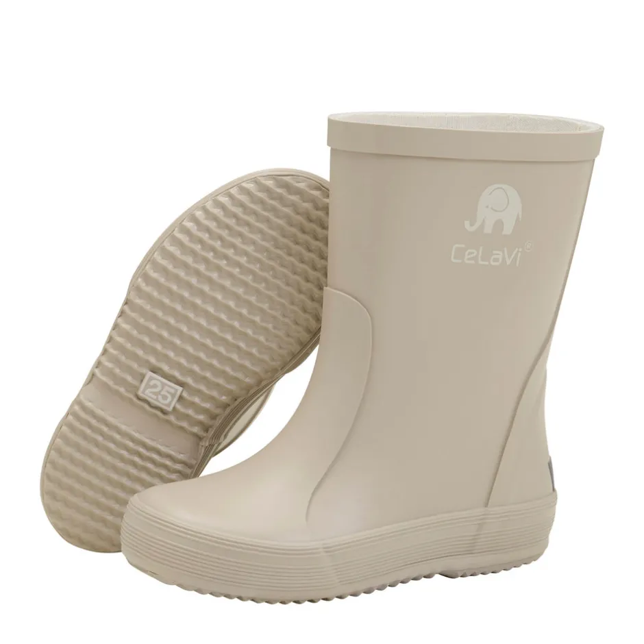 Kvalitetsgummistøvler fra CeLaVi. Støvlerne er håndlavet i lækkert naturgummi, og de har CeLaVi reflekslogo samt en refleksstribe ved hælen. Fås i flere farvervarianter, der matcher CeLaVi’s regntøj. Da gummistøvler til børn ofte bliver brugt flere timer ad gangen, er det vigtig for CeLaVi, at de er komfortable og funktionelle. Modellen er smallere i hælen, for at børnene bedre vil kunne bevæge sig, når de går, løber og leger. For at støvlen sidder optimalt på barnets fod, skal den som tommelfingerregel være fodens længde plus en finger (1-1,5 cm), så der er plads til storetåen og en tyk strømpe.