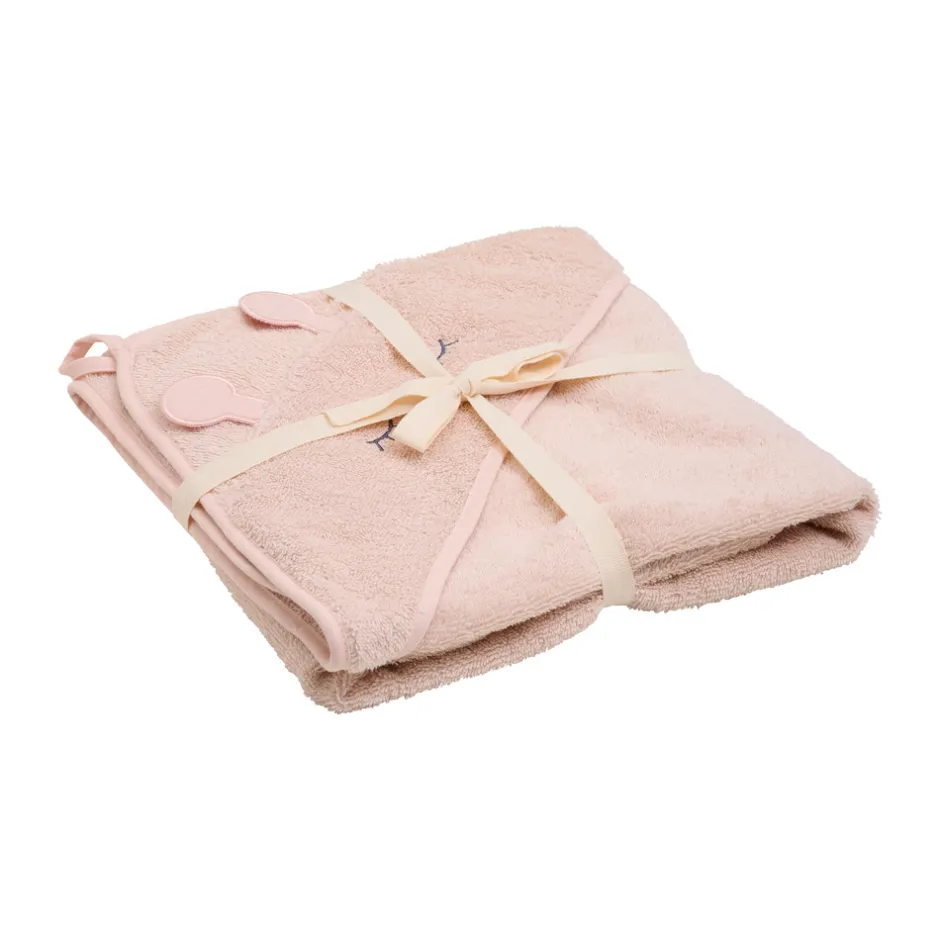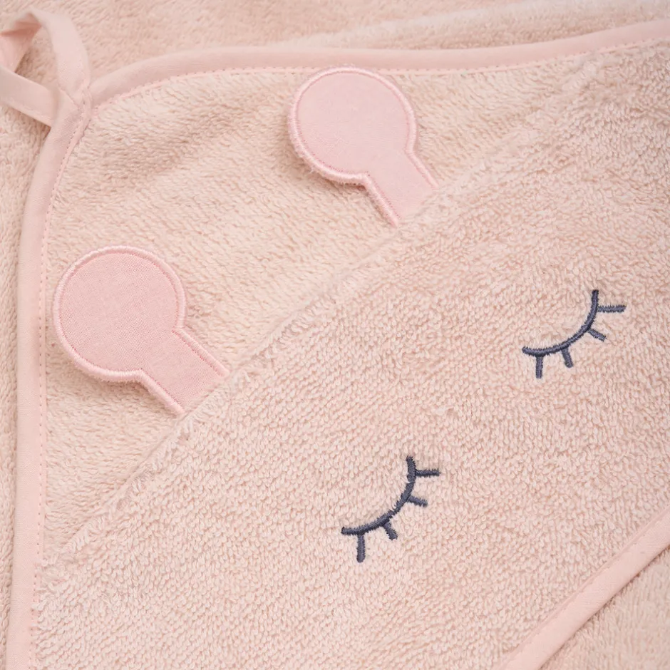 Dette håndklæde med hætte er lavet af blød frotté, hvilket gør det perfekt til at tørre og holde dit barn varmt efter badet. Den praktiske hætte sikrer, at barnets hoved også holdes varmt og tørt, mens den bløde frotté føles behagelig mod huden.