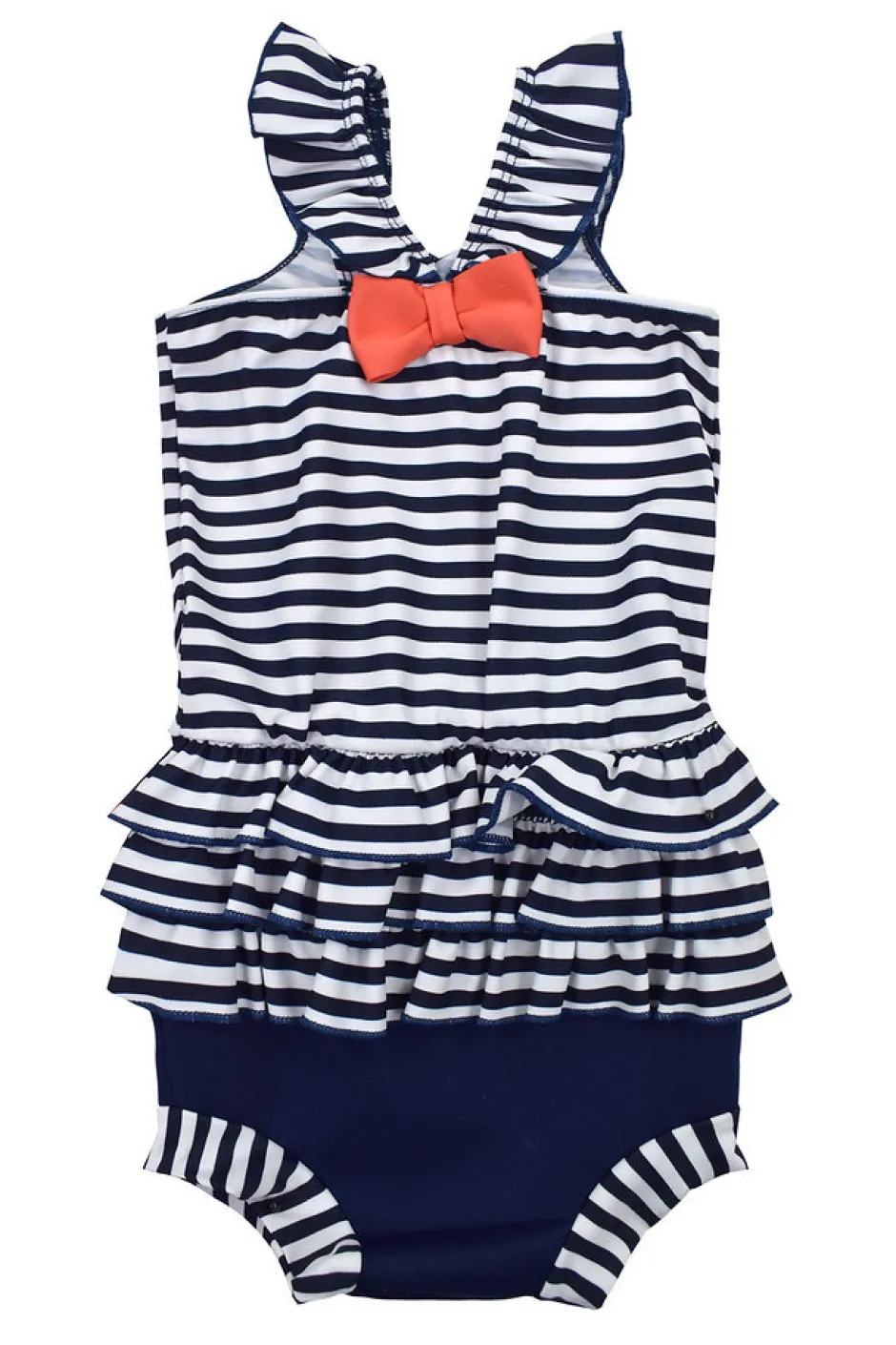 De kendte Splash About blebadebukser er indsyet i badedragten, så der kan bare leges løs uden man skal tænke på uheld.