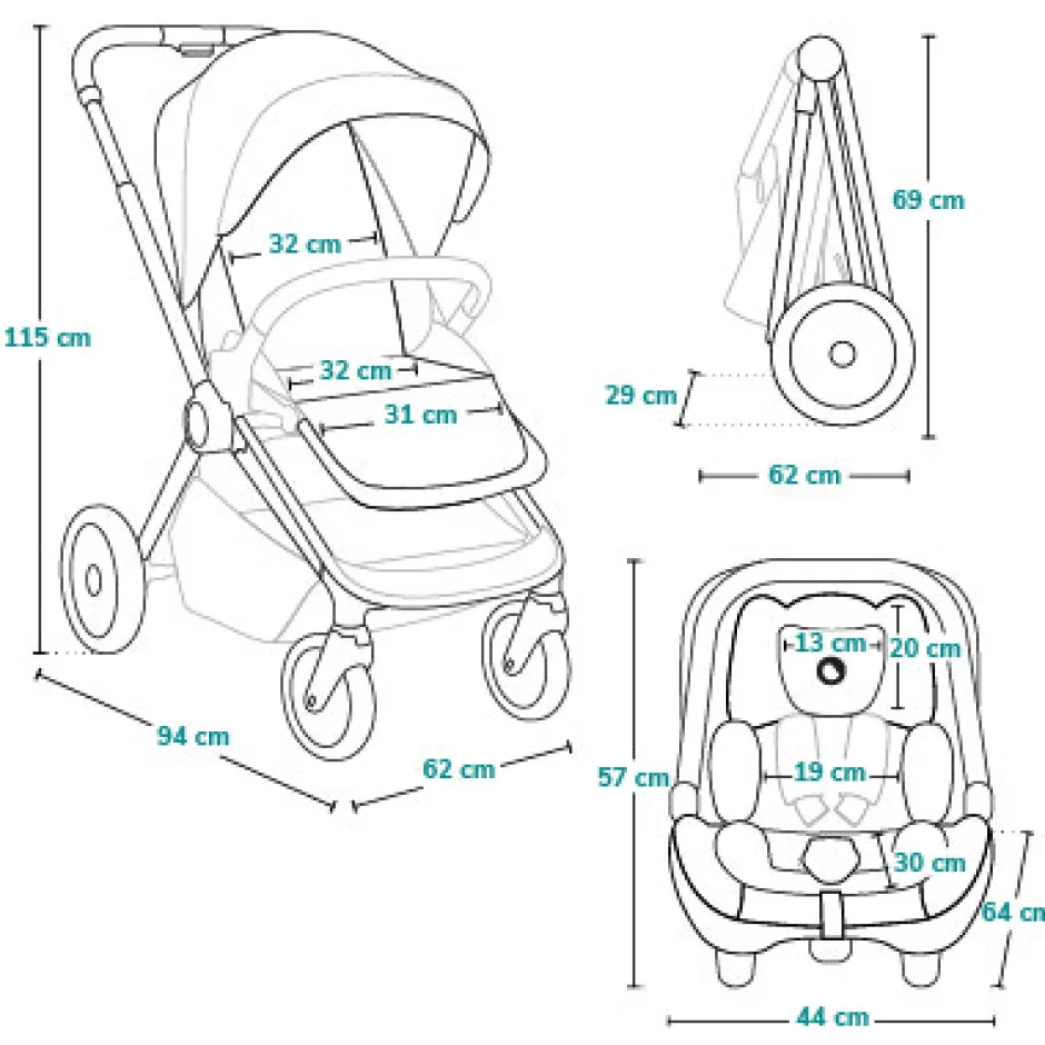 Kan nemt konverteres mellem barnevogn, klapvogn og autostol.Polstret sæde og justerbar ryglæn sikrer, at dit barn altid sidder behageligt.Klapvognen er udstyret med en 5-punkts sele for ekstra sikkerhed.De drejelige forhjul og det lette stel gør det nemt at styre vognen, selv i smalle og travle områder.En rummelig kurv under sædet giver masser af plads til opbevaring af babyudstyr og personlige ejendele.Håndtaget kan justeres i højden, så det passer til forældrenes behov og komfort.Fremstillet af slidstærke og lette materialer, der sikrer langvarig brug og nem vedligeholdelse.Terrængående gummihjul med affjedring der sikre en jævn og behagelig kørsel.Forhjulene er drejbare med mulighed for at blive fastlåst.Liggedelen kan justeres i højden med de medfølgende adapter.Medfølger en skummadras med AiryDots- system, som tilbyder perfekt støtte og åndbarhed.Liggedelen har store netvinduer på kalechen og på selve kassen – justeres nemt med magneter. Ryggen på klapvognen har 3 positioner, og kan komme i næsten flad position. Standarder: EN 1888-1, EN 1888-2, EN 1466