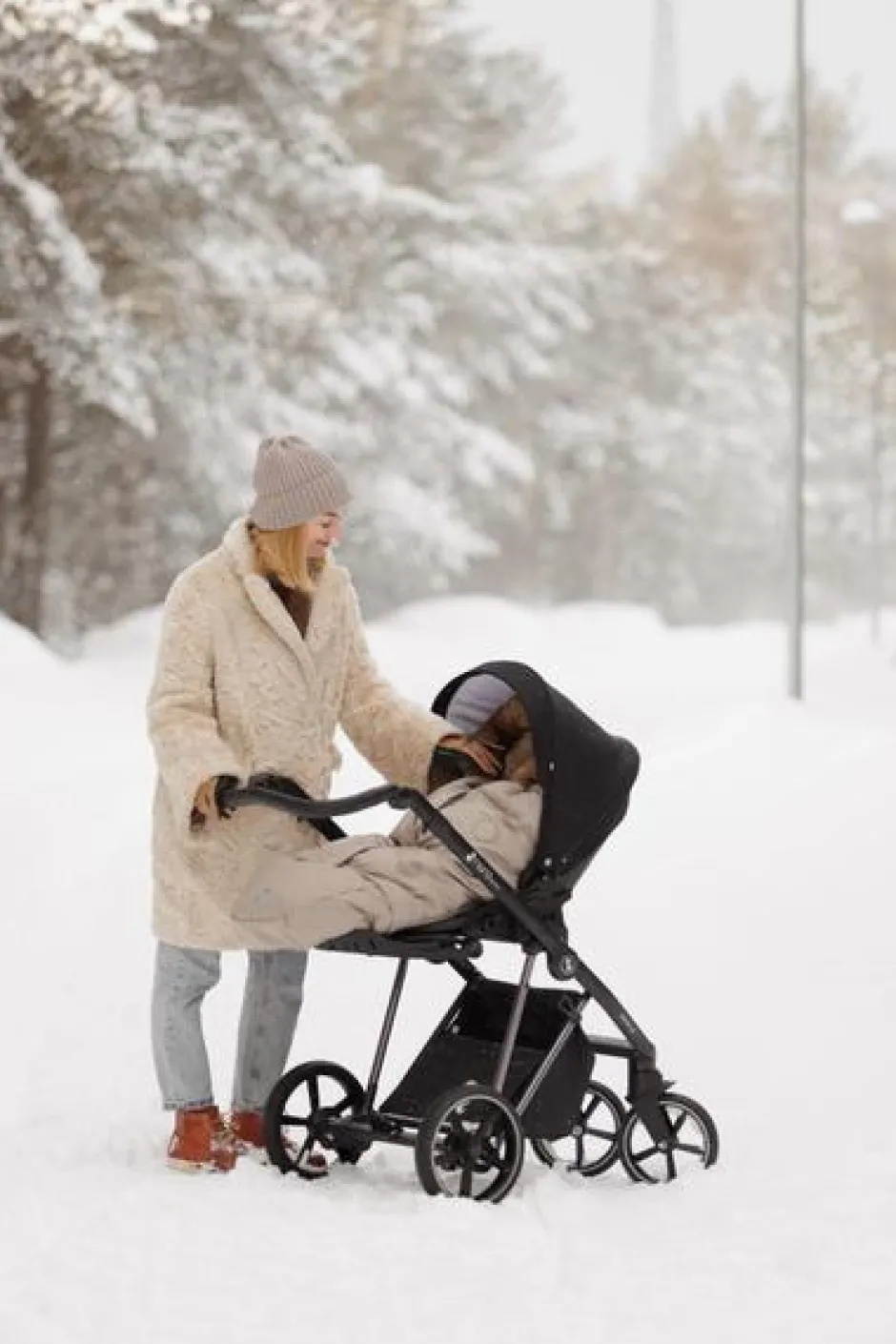 Denne kørepose beskytter mod regn, sne og vind, hvilket sikrer maksimal komfort i udendørs forhold. Den kan forlænges fra 90 til 105 cm og har et universelt design, der passer til de fleste vogne, hvilket gør den til et meget praktisk køb. Den leveres i en speciel skuldertaske for nem transport og opbevaring.