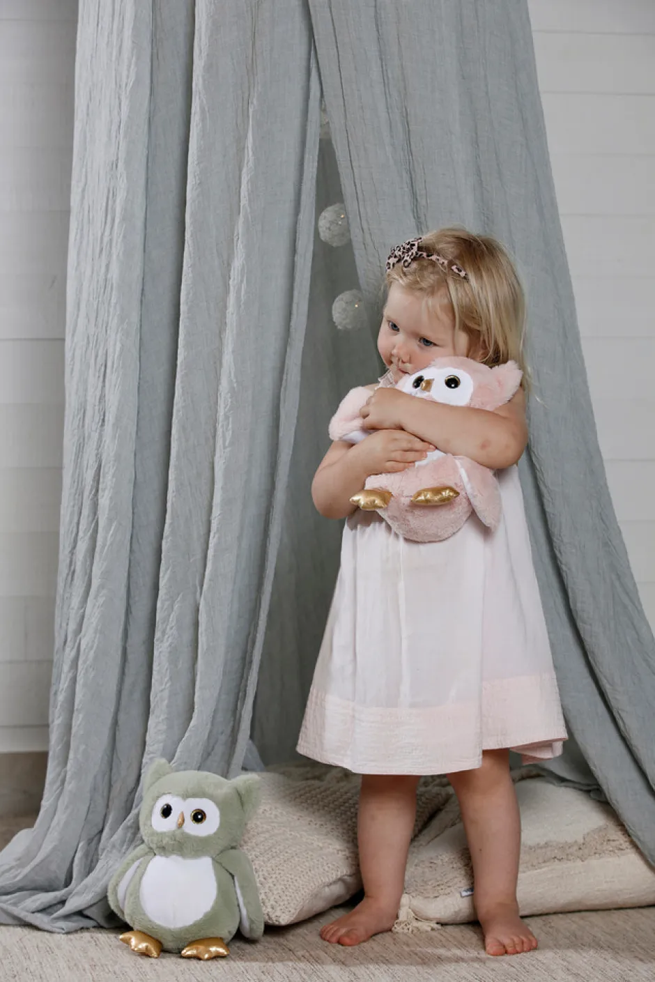En charmerende selvlysende bamse til værelset. Denne bløde og søde bamse, der ligner en ugle, har fine små guldfødder. Det hvide på uglen er selvlysende og oplades ved dagslys. Uglen giver barnet tryghed ved at lyse op i mørket og bliver hurtigt barnets bedste ven.