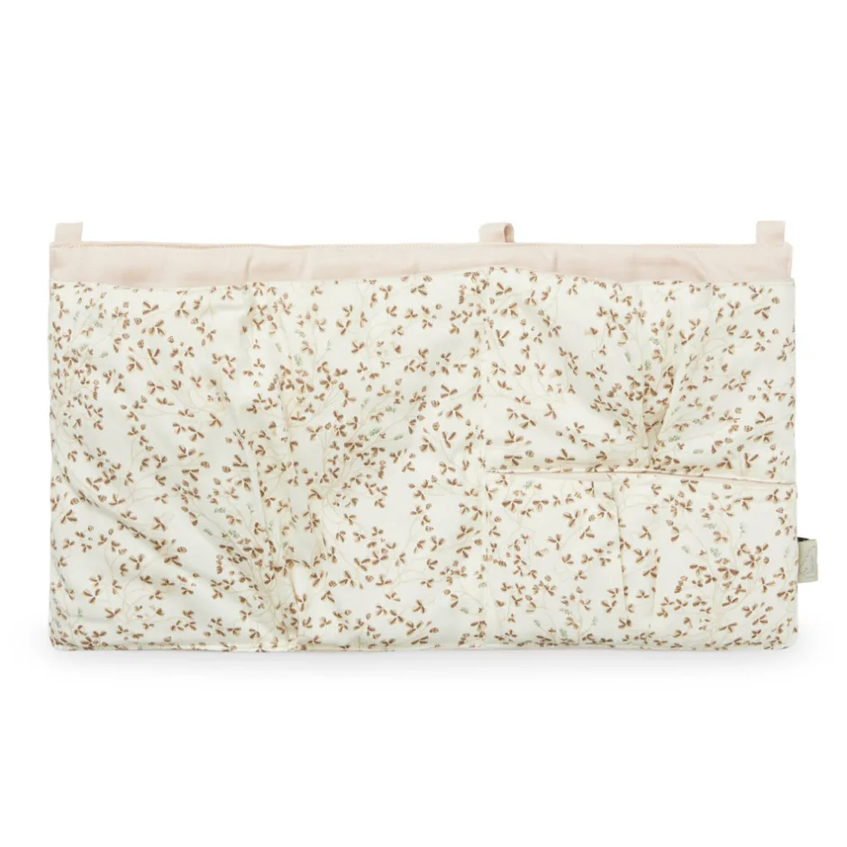 Praktisk og pæn sengelomme til at hænge på tremmesengen, så sutter, bøger, nusseklude og andre sengetidsnødvendigheder altid er lige ved hånden.