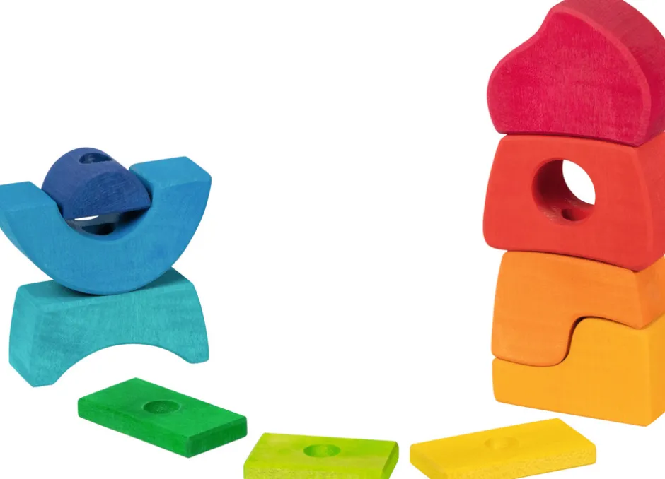 Vores stabelslot åbner nye muligheder for stabling og sortering. De forskelligt formede byggeklodser kan være stablet på træstangen, men de er også velegnede til
