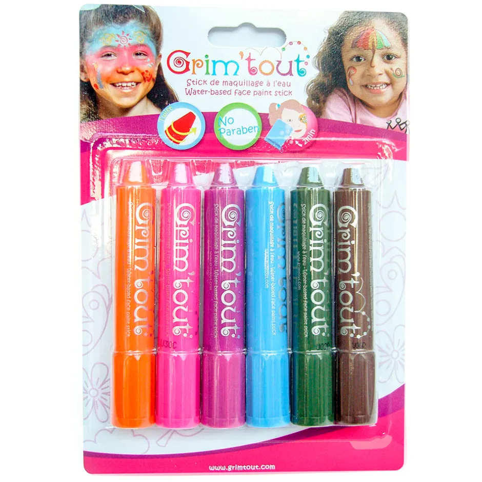 Grimsticks fra Grimtout er lette at gå til selv for små børn takket være deres twist system der fungerer ligesom en læbestift. De meget bløde sticks forbliver rene i emballagen, og kan let vaskes af ansigt og tøj med lunt vand og en lille smule sæbe. Grimsticks er produceret i Europa, og er helt fri for parabener. De er uden duft og fedter ikke. Børnene kan have det sjovt, og samtidigt minimere risikoen for allergi. Grimtout produkter er i fuld overensstemmelse med de kosmetik-standarder og er CE-certificeret.