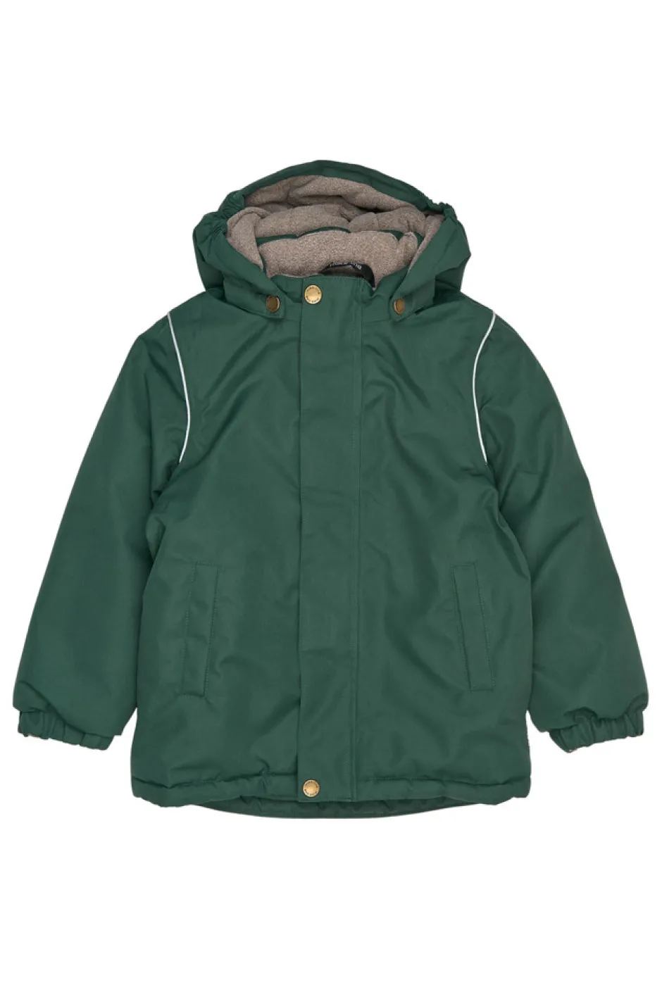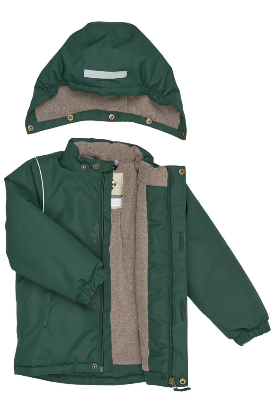 Ensfarvet mikk-line vinterjakke til børn, der elsker leg og eventyr i naturen og under åben himmel. Det er en moderne, letvægts vinterjakke, der giver varme og komfort til dit barn i det kolde efterårs- og vintervejr med vind, regn og sne.