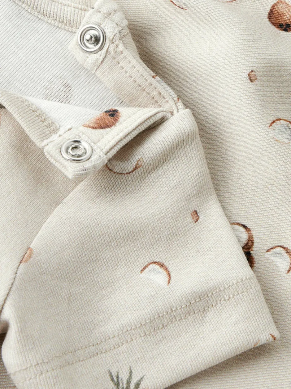 Med et gennemgående print og smarte detaljer som trykknapslukning, er denne bodysuit både nem at tage af og på og skøn at have på – uanset om det er til leg, lur eller hygge.
