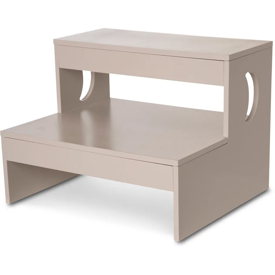Skamlen er i en fin neutral farve, med en måne udskæring på side, som barnet let selv kan få fingrende i og løfte.