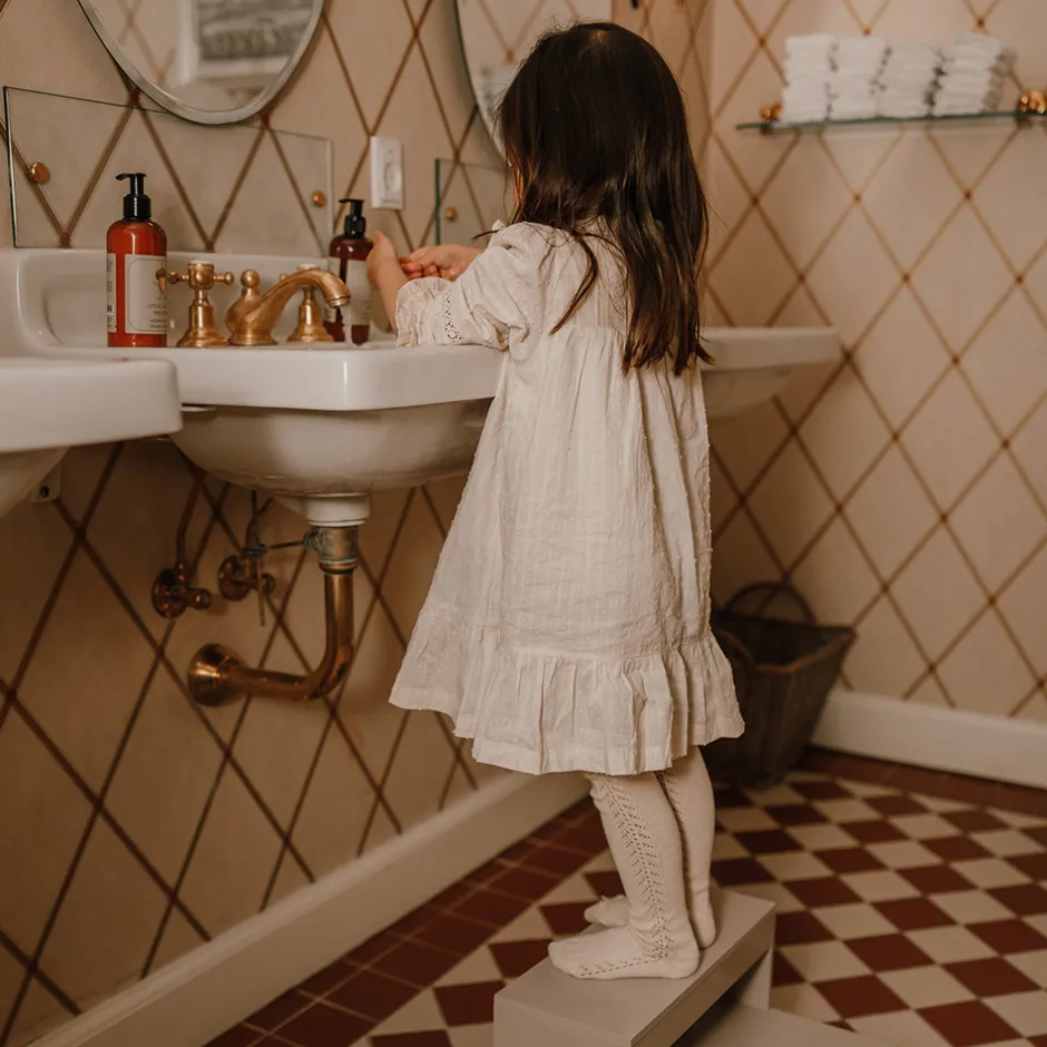 Skamlen har to trin og er bland andet perfekt hvis den lille ønsker at se med i køkkenet.