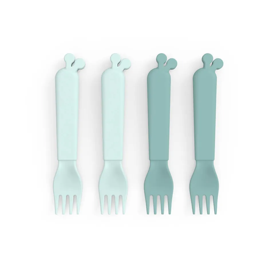 Når din tumling øver sig i at spise selv, er det godt at have rigeligt med gafler på lager. Kiddish gaflerne med Raffi ører passer perfekt i en lille hånd og gør det sikkert og nemt for din tumling at øve sig i at spise med bestik. Kiddish gaflerne er genanvendelige og produceret i Danmark. Når gaflerne er slidt op, kan de sorteres som hård plast og genanvendes til at producere nye produkter til hverdagen.