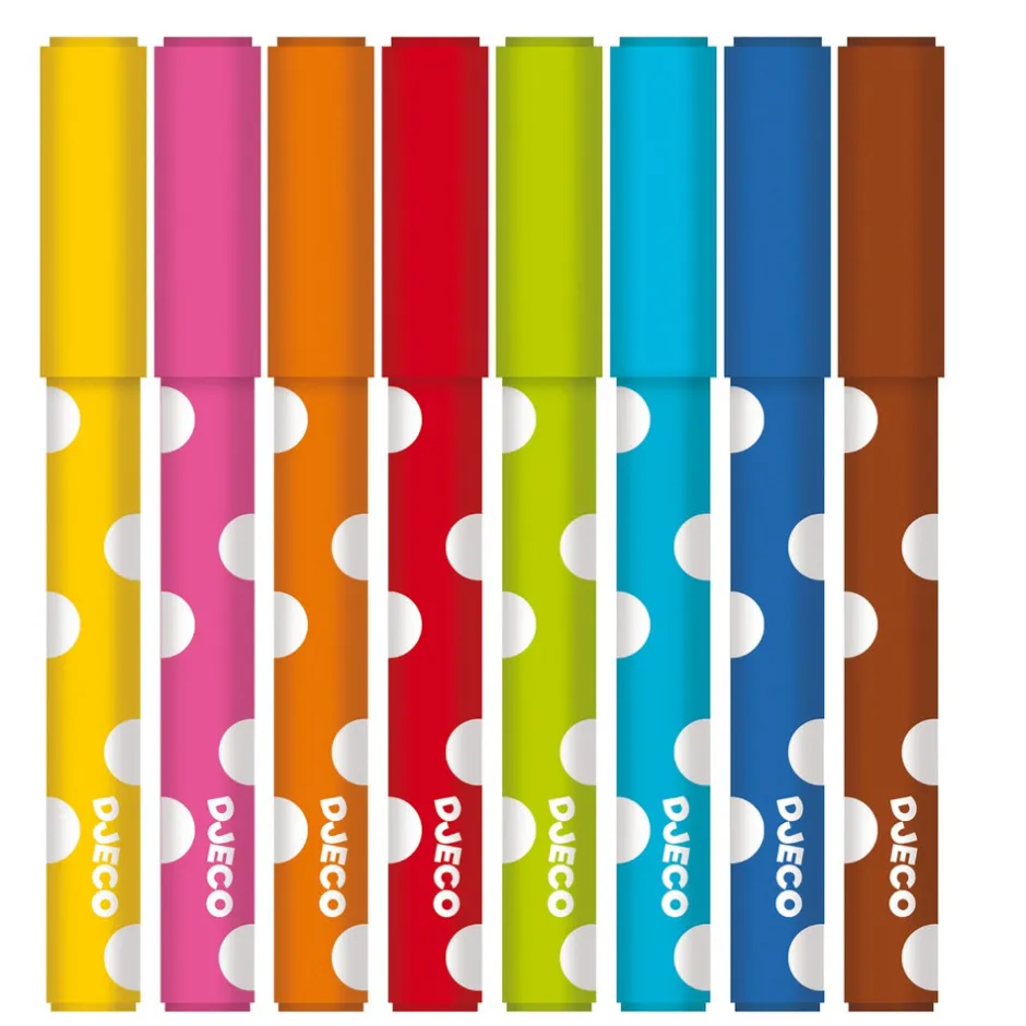 Tykke tuscher for de små , der er gode at holde om, og som nemt kan vaskes af huden, hvis de får tegnet på sig selv.