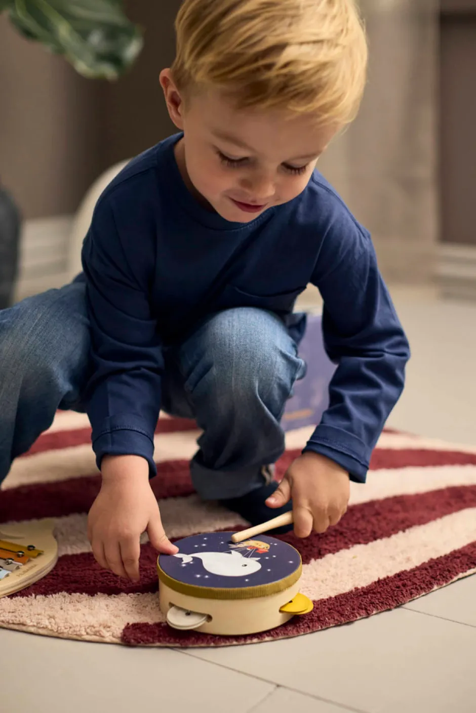 Introducer dit lille barn til musikkens glæder med dette charmerende sæt af træinstrumenter. De fine instrumenter opmuntrer til kreativ udfoldelse, og er perfekte til små hænder. Legestunden fyldes med både sjove lyde og musikalsk opdagelse. Uanset om det er en blid melodi eller en livlig rytme, vil kuffertens indhold være med til at vække en tidlig kærlighed til musik hos dit barn.Instrumenterne leveres i en smuk kuffert, som gør det nemt at opbevare legetøjet, når det ikke er i brug, eller tage det med på farten. Den dekorative kuffert med metalhåndtag og hængsler fungerer som et smukt blikfang på dit barns værelse og kombinerer funktionalitet og charme på bedste vis.Kort om mig:- Indeholder 3 træinstrumenter: xylofon, kastanjetter og tamburin.- Opbevares i en holdbar papkuffert med metalhåndtag og hængsler.- Dekoreret med søde illustrationer.- Opmuntrer til kreativitet, rytme og musikalsk udforskning.- Egnet fra: 12 måneder.