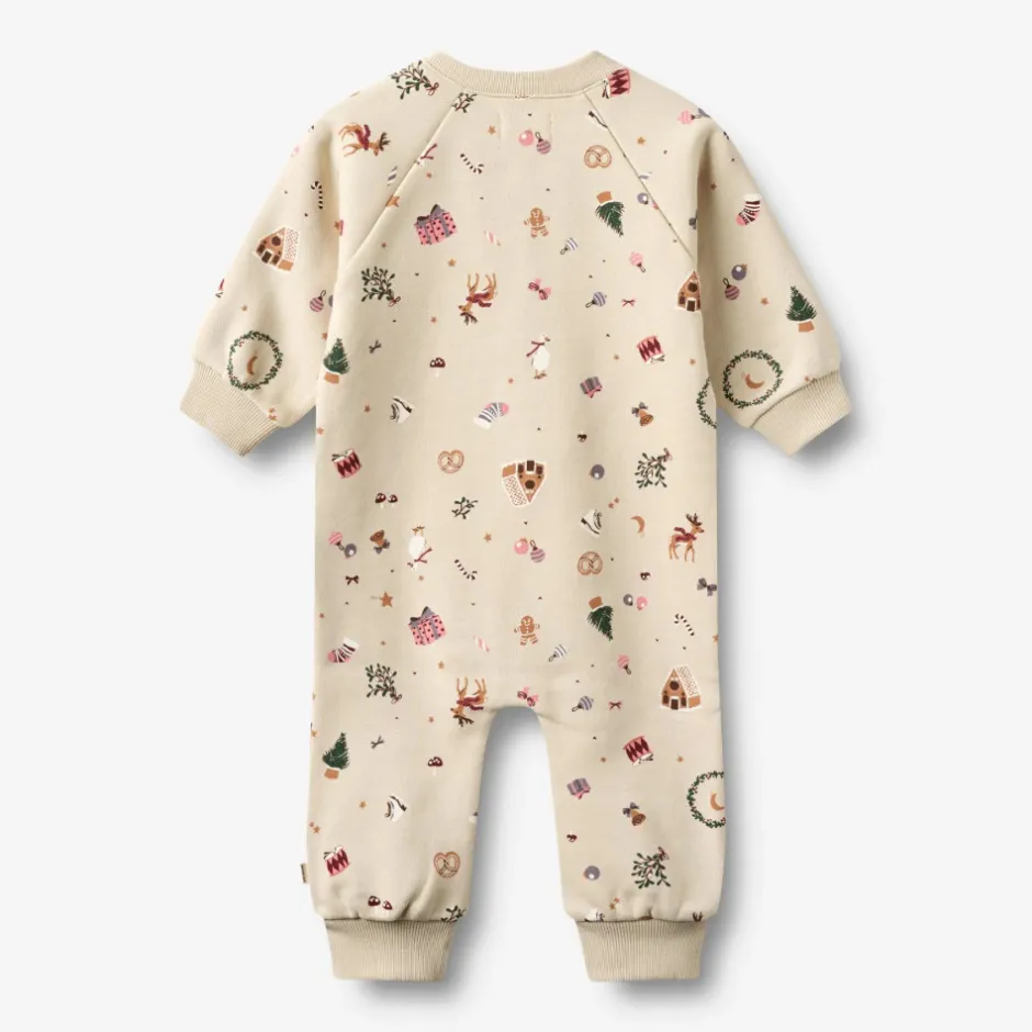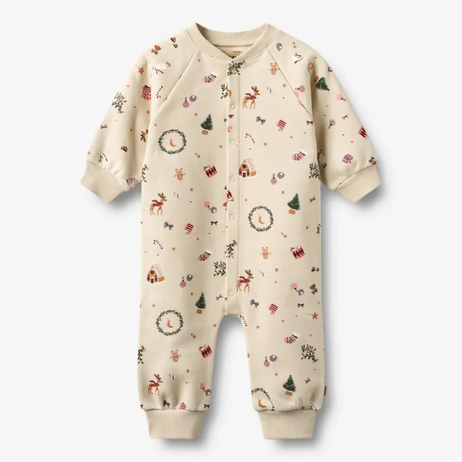 Langærmet heldragt i blødt økologisk bomuld til din baby. Denne babyheldragt er både sød og behagelig. Heldragten har enten trykknapper på skulderen eller foran samt langs indersømmen af benene, som gør det lettere for dig at klæde din baby på. Heldragten kan bruges alene eller som ekstra lag under hverdagstøjet.
