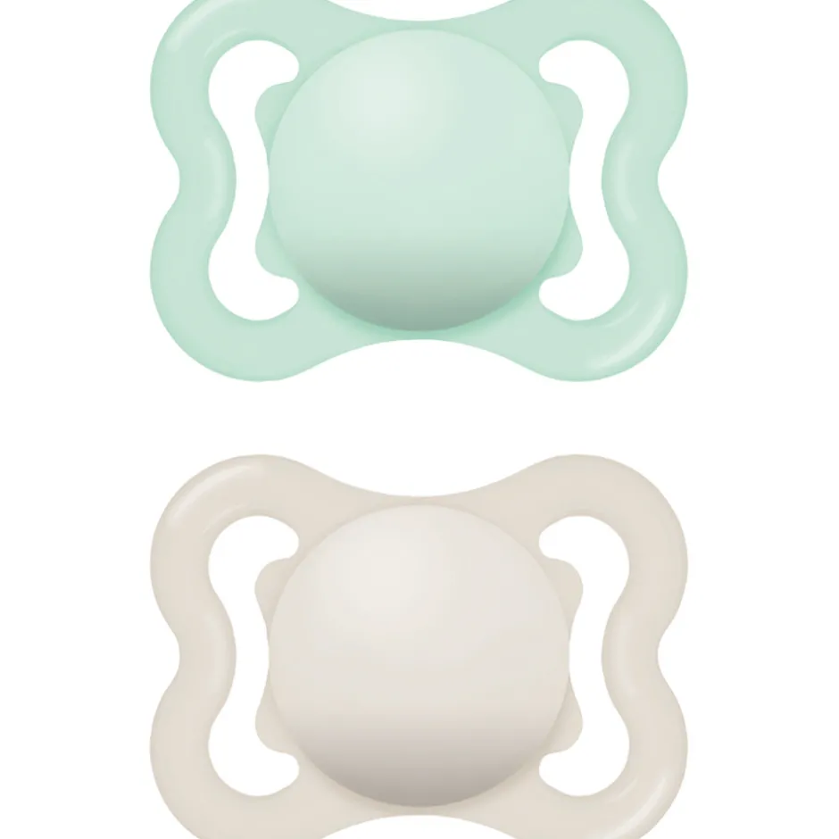 MAM Air har en flad, symmetrisk sut og ekstra store lufthuller, så barnets følsomme hud kan ånde. Det specielle design gør også, at forældrene kan se barnets smil, selv når sutten er i brug. Sugedelen er lavet af silkeblød silikone, MAMSkinSoftTM-silikone som føles blød og velkendt, ligesom mors hud, og som accepteres af 94% af alle babyer*. Sutterne leveres i en praktisk opbevarings- og steriliseringsæske, der gør det nemt at sterilisere sutterne i mikrobølgeovnen.