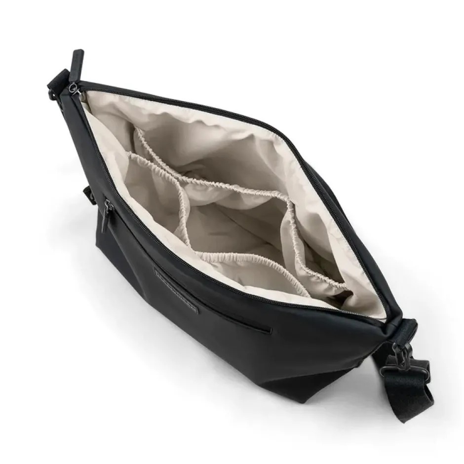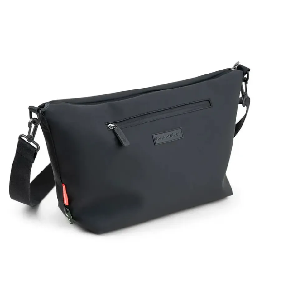 Praktisk sort barnevognstaske til dine vigtigste babyting på fartenSæt tasken fast på barnevognens håndtag ved hjælp af de medfølgende barnevognskrogeEt stort rum med fire indvendige og en udvendig lommeEn fleksibel, bred skulderrem gør tasken nem at justereSlidstærk og vandafvisende overflade44 x 14 x H 25 cm. | 10LStof: 100 % genbrugspolyester med PU-belægning. For: 100 % genbrugspolyester.Der blev brugt 18 genbrugte PET-flasker til fremstilling af dette produkt.