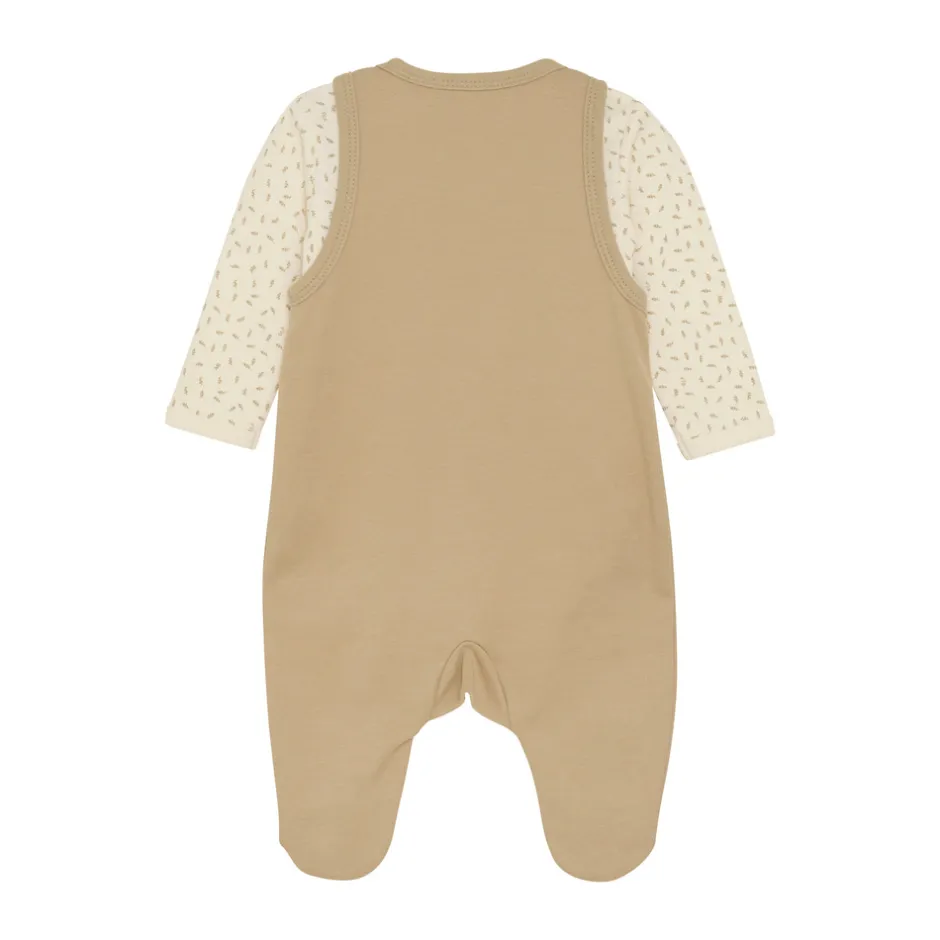 Sættet består af en langærmet body og en romper med fod. Bodyen er skabt for at give optimal komfort og varme, mens den matchende romper med fod sørger for, at din baby er fuldt beskyttet fra top til tå.