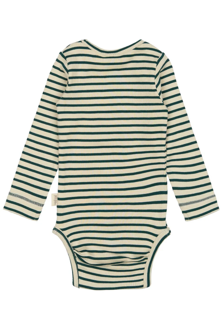 Petit Piao stribet body med de klassiske striber i økologisk bomuld. Striberne er i to farver, hvor bundfarven er en cremefarvet, så striberne beholder sit klassiske look. I halsåbningens venstre side er der en trykknap som gør det nemt at få den over barnets hoved. I bunden er der tre trykknapper, som gør det let at stifte barnet. Ribkvaliteten giver et meget fleksibelt materiale, så barnet har let ved at bevæge sig og lege. Produceret i Indien.