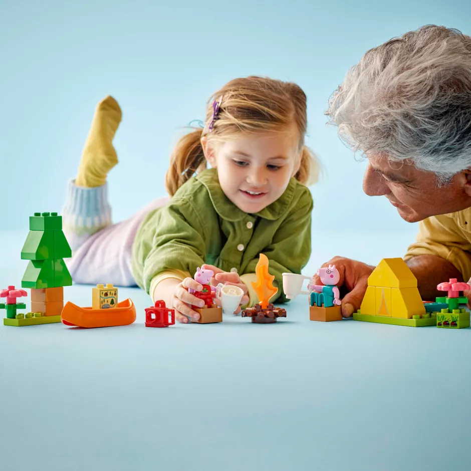 Små børn kan begive sig ud på et LEGO® DUPLO® Gurli Gris-eventyr med byggesættet Campingtur (10452). Gennem kreativ leg udforsker små børn nye ting og førstegangsoplevelser, når de leger, at de camperer med Gurli Gris og Far Gris og tager en tur på en flod i legetøjskanoen. Det fantasifulde legetøj til børn fra 2 år omfatter masser af sjovt tilbehør. Der er et legetøjstelt med 2 soveposer, et lejrbål, 2 krus og et kort, der inspirerer til logisk tænkning, når små børn finder på spændende eventyr, som Gurli og Far Gris kan tage ud på i deres kano. Børn øver finmotorikken ved at bygge elementerne på legetøjskortet. De kan tilbringe tid i naturen, finde mariehøns og tage feriebilleder med legetøjskameraet. Gurli Gris-læringslegetøjet af højkvalitet er glimrende til at begynde at tale om de følelser, de mindste kan føle, når de sover i telt for første gang. Disse samtaler er også med til at opbygge selvtillid, så små børn begynder at føle, at de også kan være eventyrlystne ligesom Gurli!