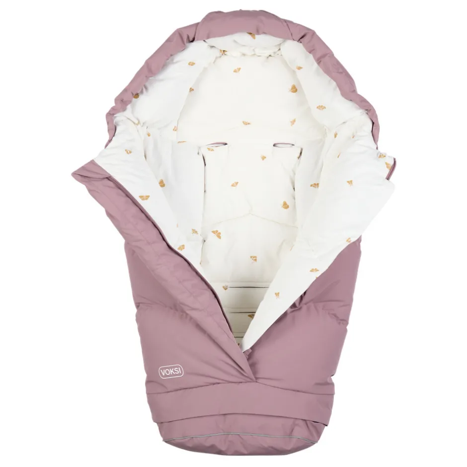 Køreposen består af naturlige og kvalitetssikre materialer som uld og dun. Der er uld i ryggen, som temperaturregulerer og sørger for at barnet holdes tørt. Fyldet i overdelen består af højkvalitetsdun og syningerne er lavet med en unik bokskonstruktion, der hindrer kulde i at slippe ind. Det er luften mellem dunfibrene, som giver maksimal isolering og holder barnet varmt i det kolde vejr. Tekstilet på indersiden er fremstillet af blød bomuld, som gør det behageligt for barnet at ligge på. Yderstoffet er vindtæt, har en vandsøjle på 8000 og er behandlet med BIONIC-FINISH®ECO. Når det regner kraftigt, anbefaler vi dog at bruge et regnslag på ydersiden. Alle materialerne i Voksi City North er OEKO-TEX®standard 100, klasse 1 certificeret, som er et kvalitetsstempel, der sikrer at ingen af materialerne i produktet indeholder skadelige kemikalier.