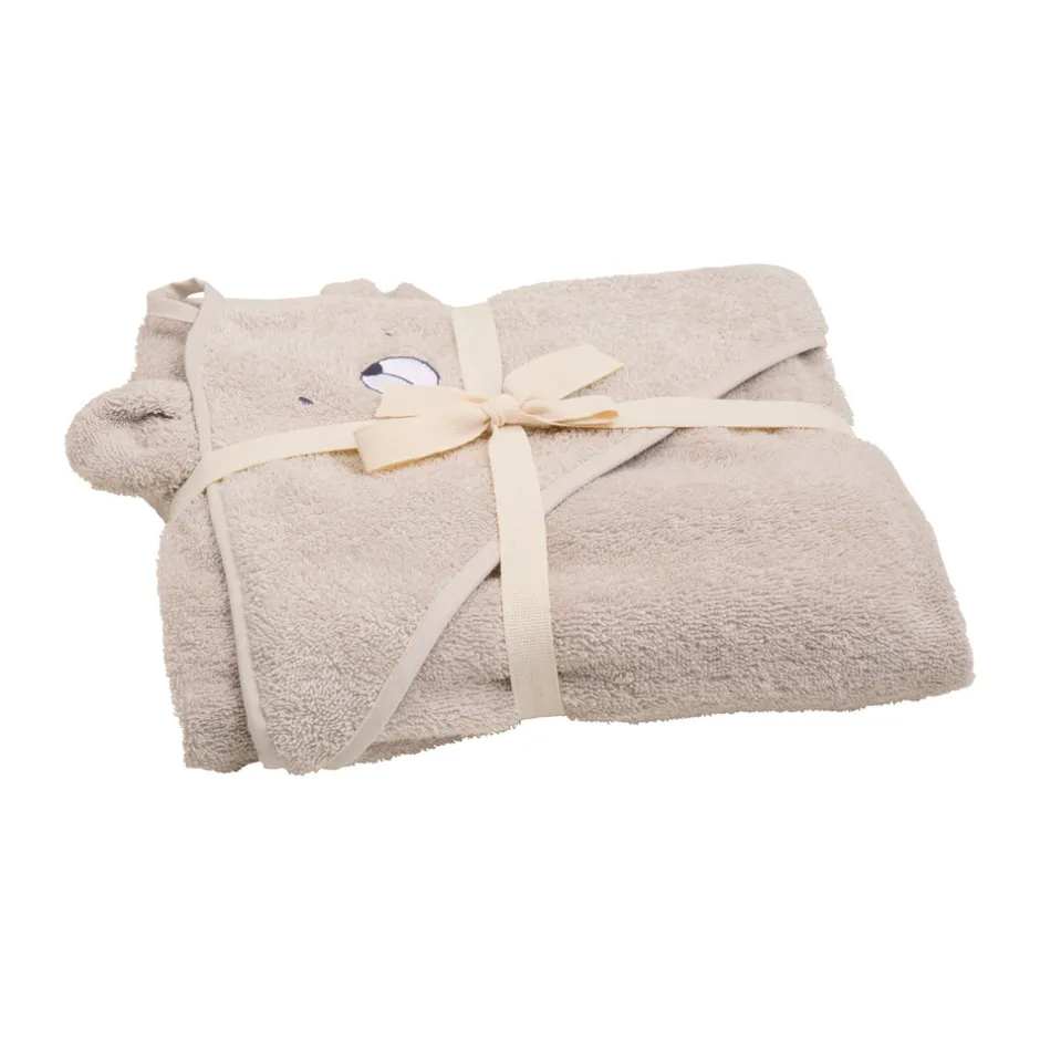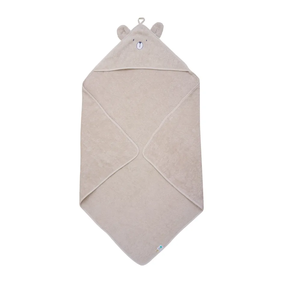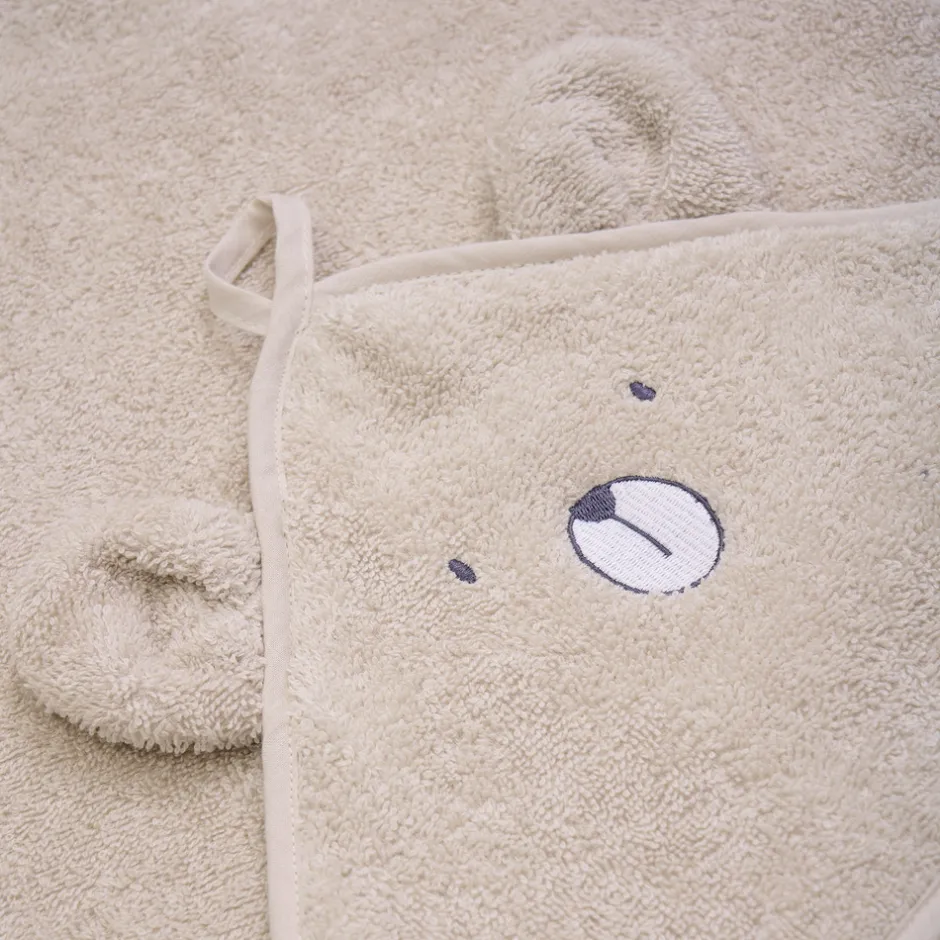 Dette håndklæde med hætte er lavet af blød frotté, hvilket gør det perfekt til at tørre og holde dit barn varmt efter badet. Den praktiske hætte sikrer, at barnets hoved også holdes varmt og tørt, mens den bløde frotté føles behagelig mod huden.