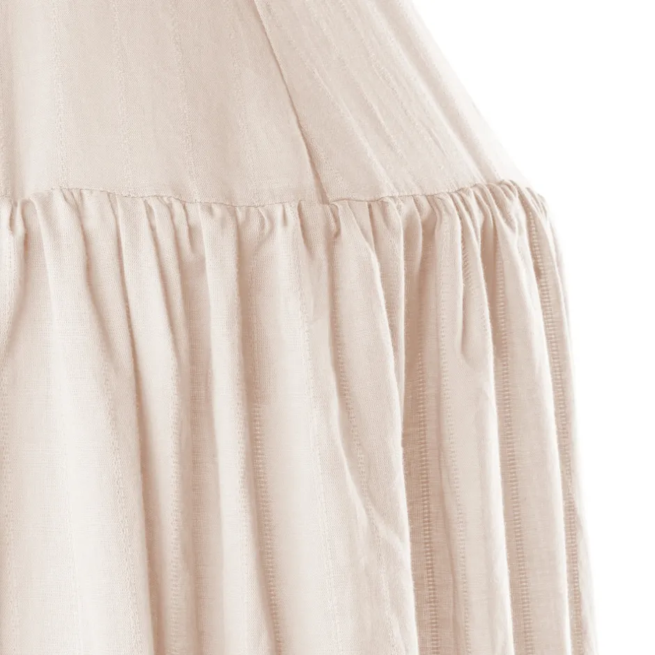 Smuk og enkel sengehimmel der tilføjer et elegant og stilfuldt touch til børneværelset. Sengehimlen er designet i Danmark og kan bruges over babysengen for at skabe en tryg og beroligende atmosfære omkring sovemiljøet. Vågner dit barn tidligt, f.eks. pga. morgensol, så kan en sengehimmel også bidrage til at gøre sengeomgivelserne lidt mørkere. Det smukke stof er monteret på en metalbøjle med et kryds, hvorfra der eksempelvis kan hænges en uro eller drømmefanger.