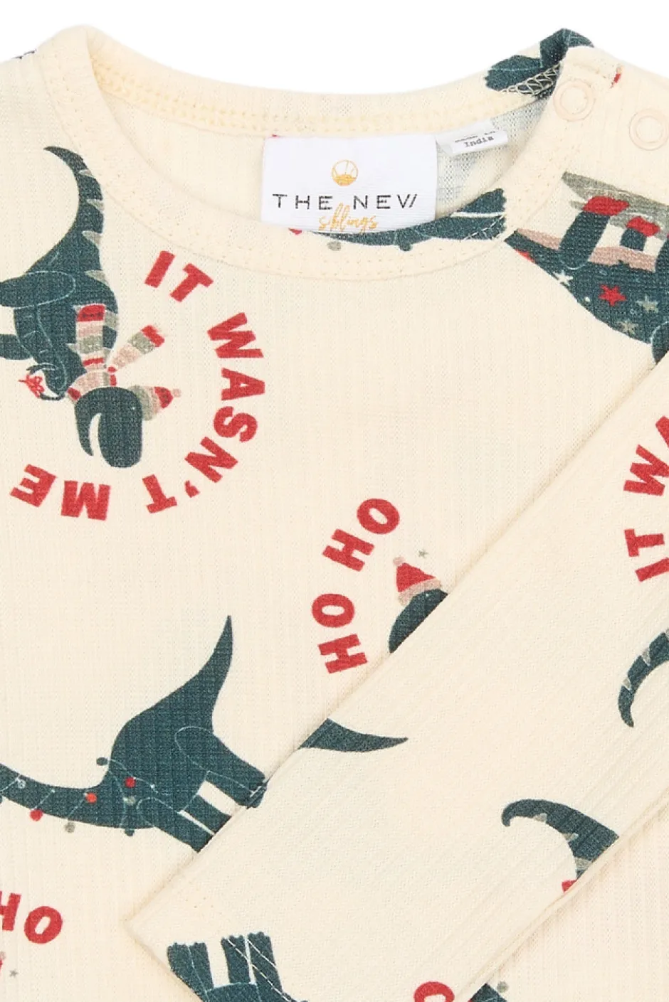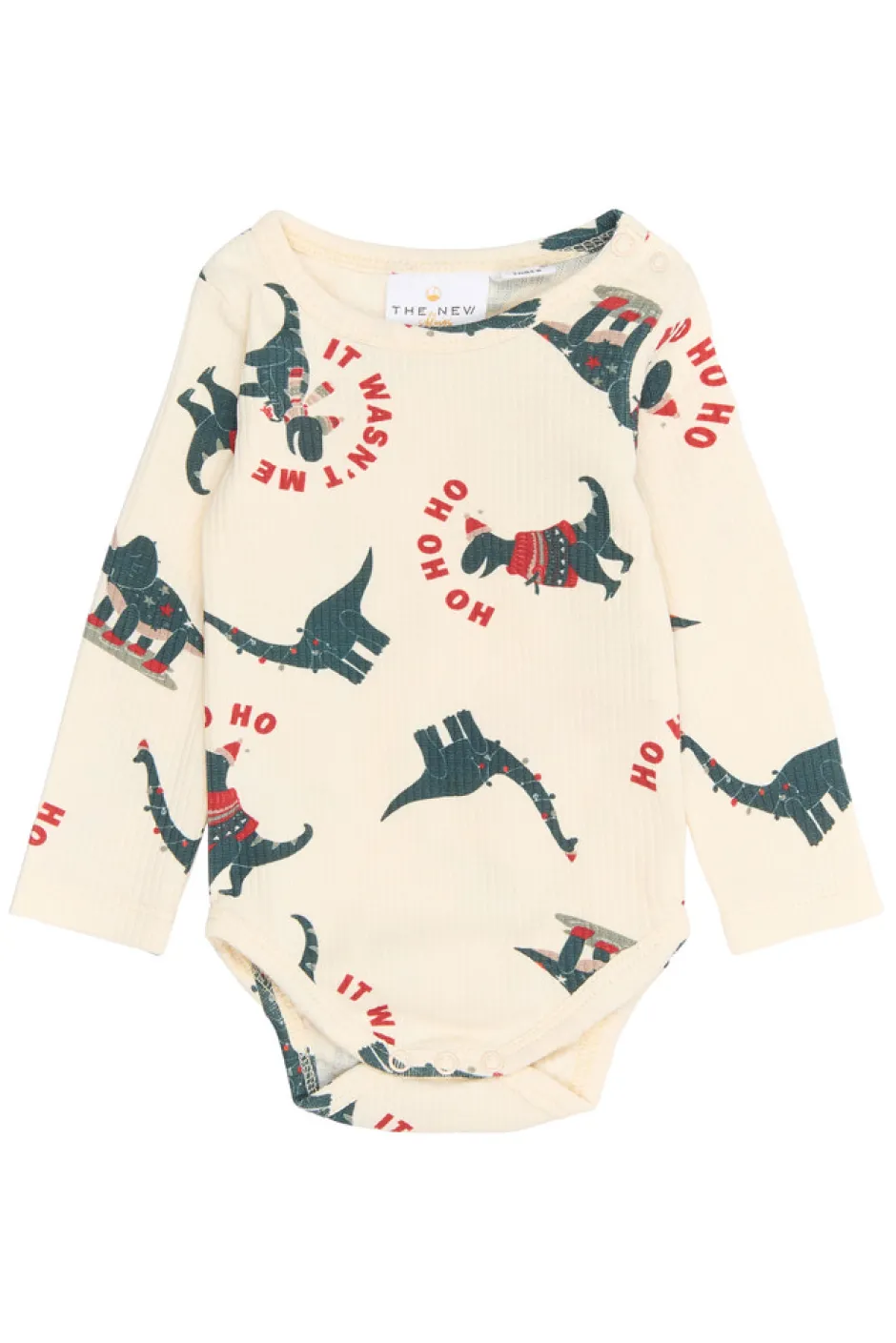 TNSB Holiday Rib Body fra THE NEW Siblings er en charmerende og sjov tilføjelse til vintergarderoben. Kroppen fås i to festlige varianter – en med katte iført nissehuer og en med dinosaurer klædt til højtiden – begge med legende all-over print, der skaber en hyggelig og humoristisk stemning. Den slanke pasform og praktiske trykknapper ved skulder og bund gør den nem at tage af og på, samtidig med at den sikrer en blød og behagelig fornemmelse mod huden.
