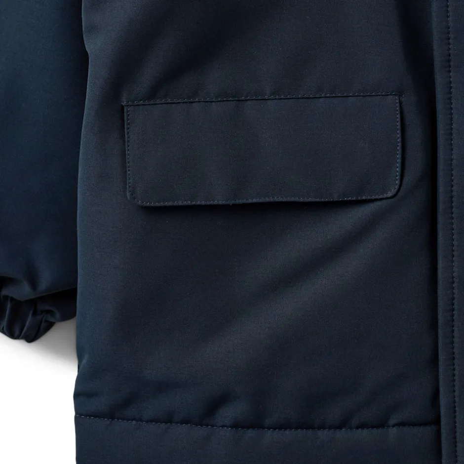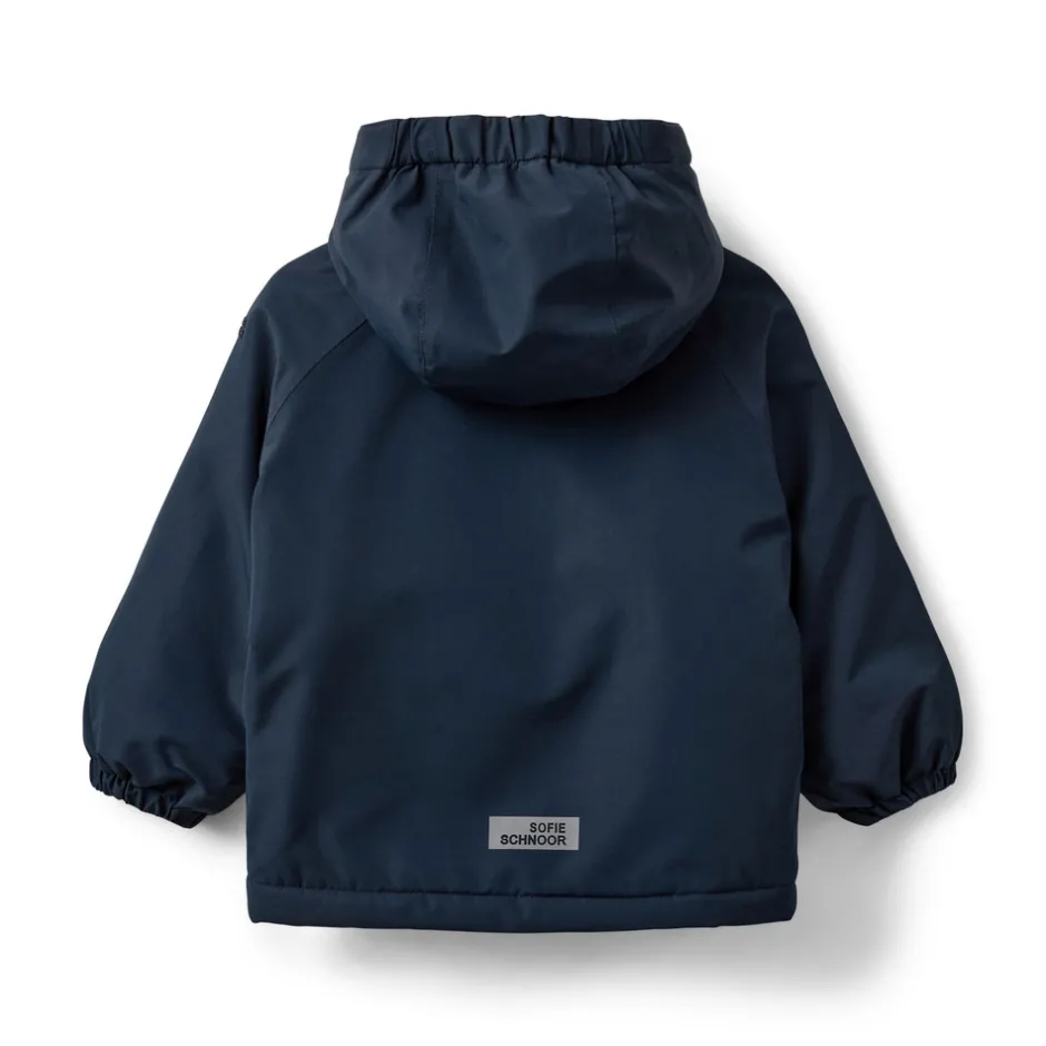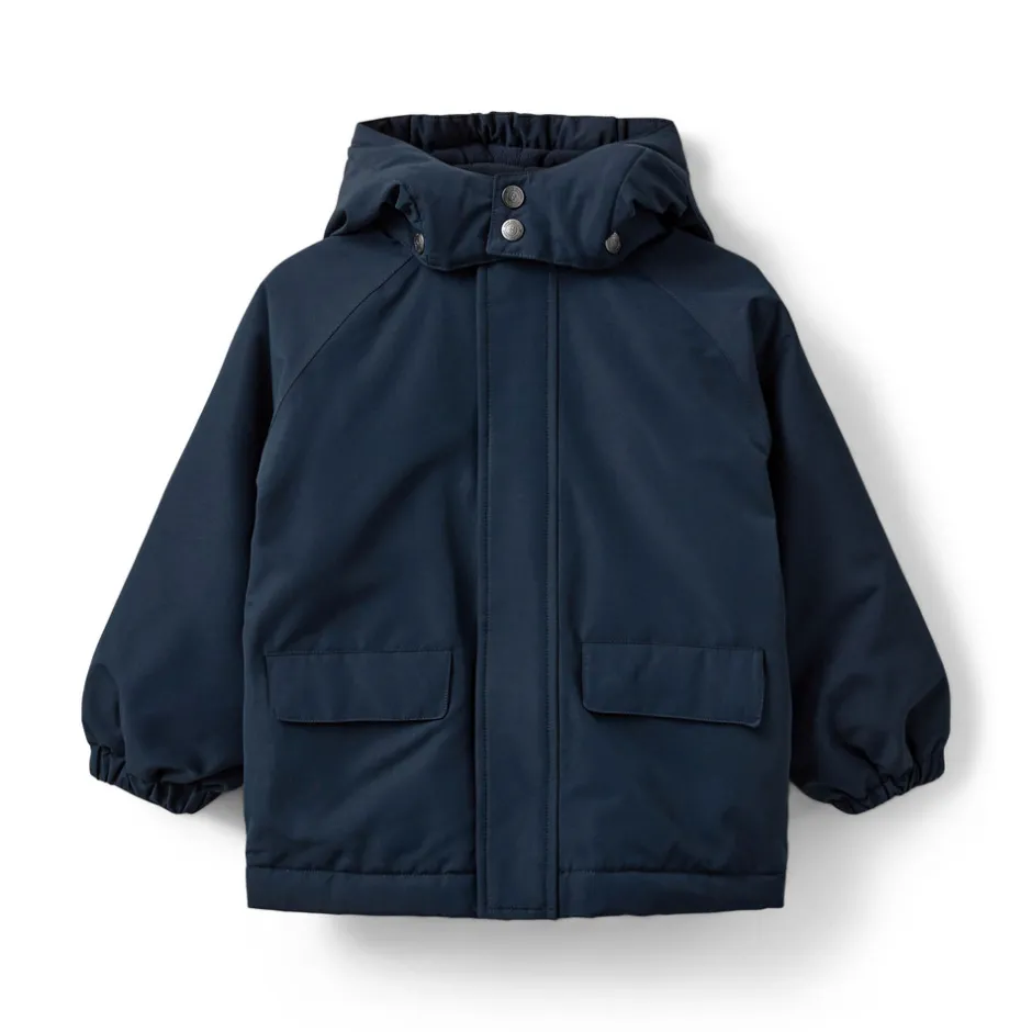 Jakke med hætte, 2 lommer foran og elastik i ærmerne.