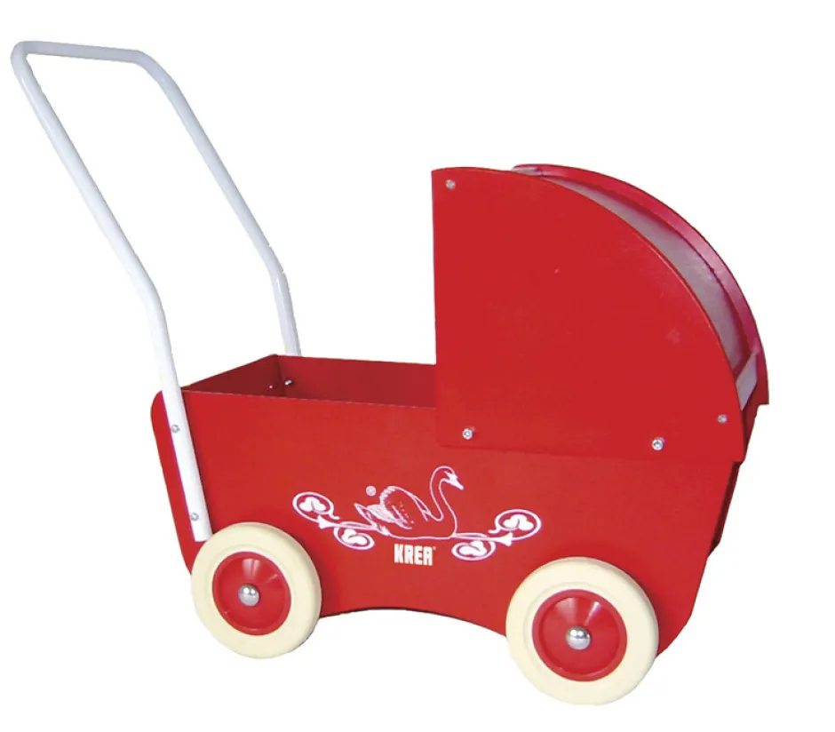 Lad dukkerne sove sødt i denne klassiske dukkevogn i træ fra KREA med sødt svanemotiv på siderne, som mor måske kan huske fra sin egen barndom. Dukkevognen er i et tidløst design med små gummibelagte hjul, der sikre en stabil og mere lydløs kørsel. Dukkevognen måler: H: 42 x B: 22 x L: 44 cm. – Indvendige mål: L: 32 x B: 17 cm. Leveres usamlet, men er let at samle. Max. vægt: 25 kg.