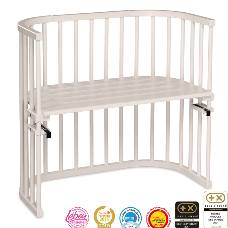Med babybay Original begynder historien om alle co-sleepers i 2003. Deres bedst sælgende klassiker, elsket af jordemødre, i en afrundet form, som barnet var vant til under graviditeten. Takket være den unikke og trinløst højdejustering kan liggefladen justeres nøjagtigt til enhver sengehøjde – intet trin, intet mellemrum.