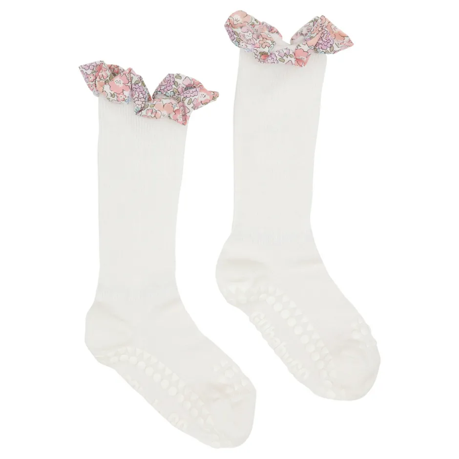 GoBabyGo skridsikre strømper i bambus har special designede gummi dutter under fødderne og ovenpå tæerne, så barnet ikke glider når det skal i gang med at lære at kravle og gå.
